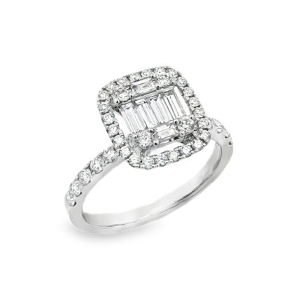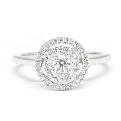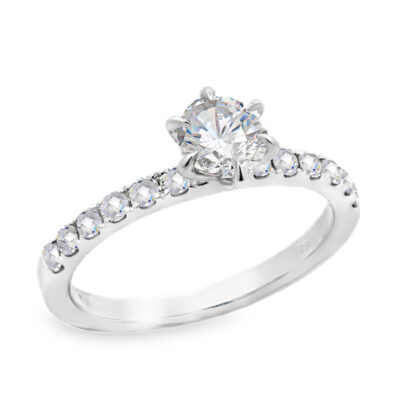 Stunning 18k white gold single stone diamond ring with side diamonds
