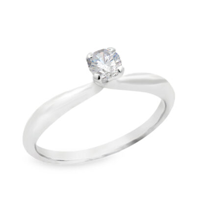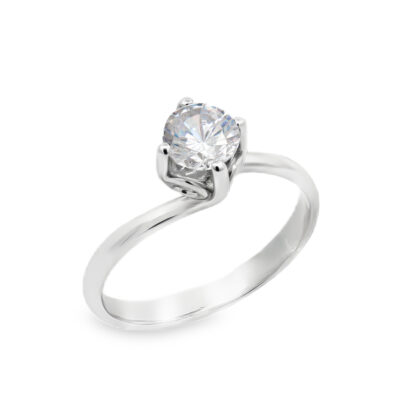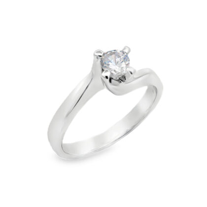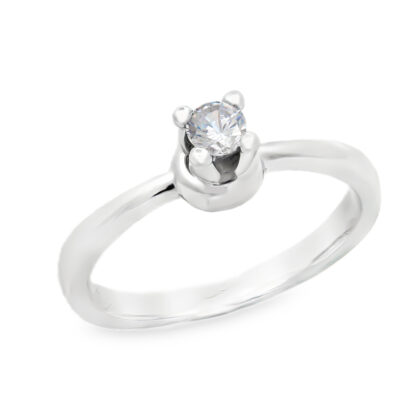 Minimal "flamme" single stone ring with diamond in 18k white gold