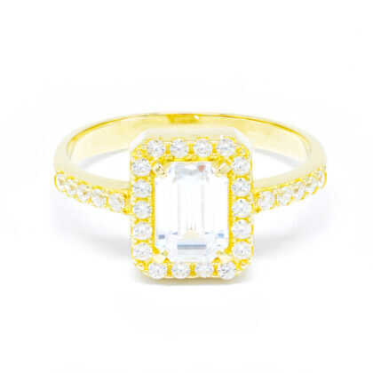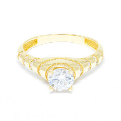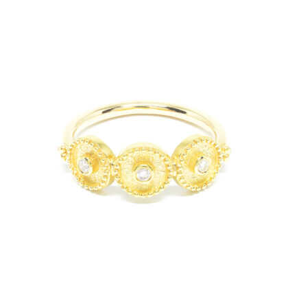 Modern diamond ring with oval sapphire in 18k yellow gold