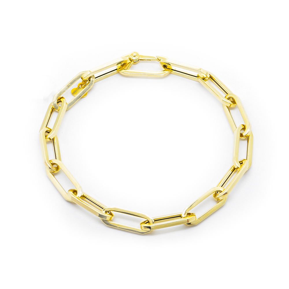 14k yellow gold bracelet in a timelessly impressive design that exudes a glam rock style and a chain design with long narrow parallelogram links. Ideal for fashion statement looks that will make you stand out.