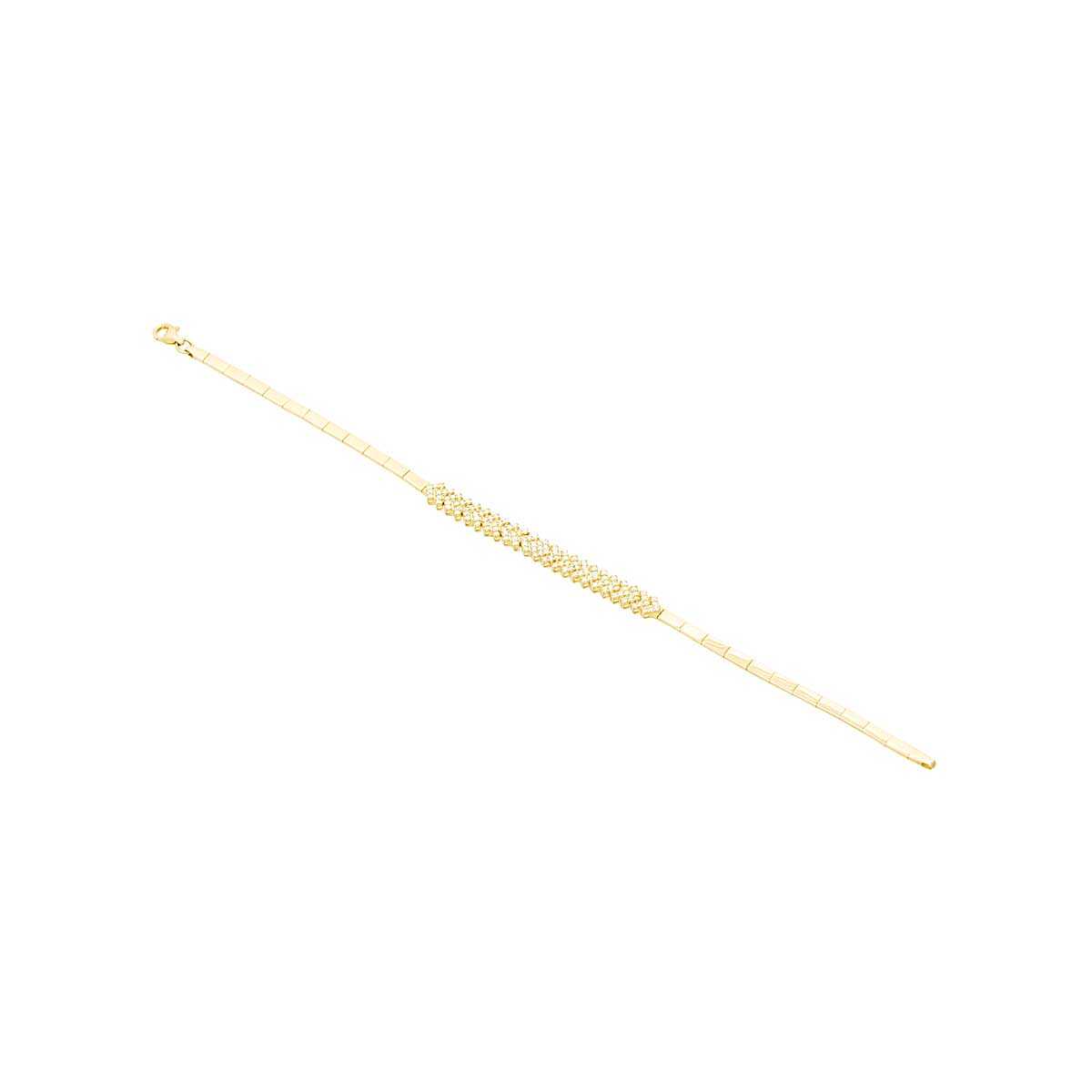 K14 yellow gold bracelet in a classy design with repeated patterns of cubic zrgons studded in a unique shape. A bracelet of timeless elegance and sparkle for unique looks. WEDDING COLLECTION