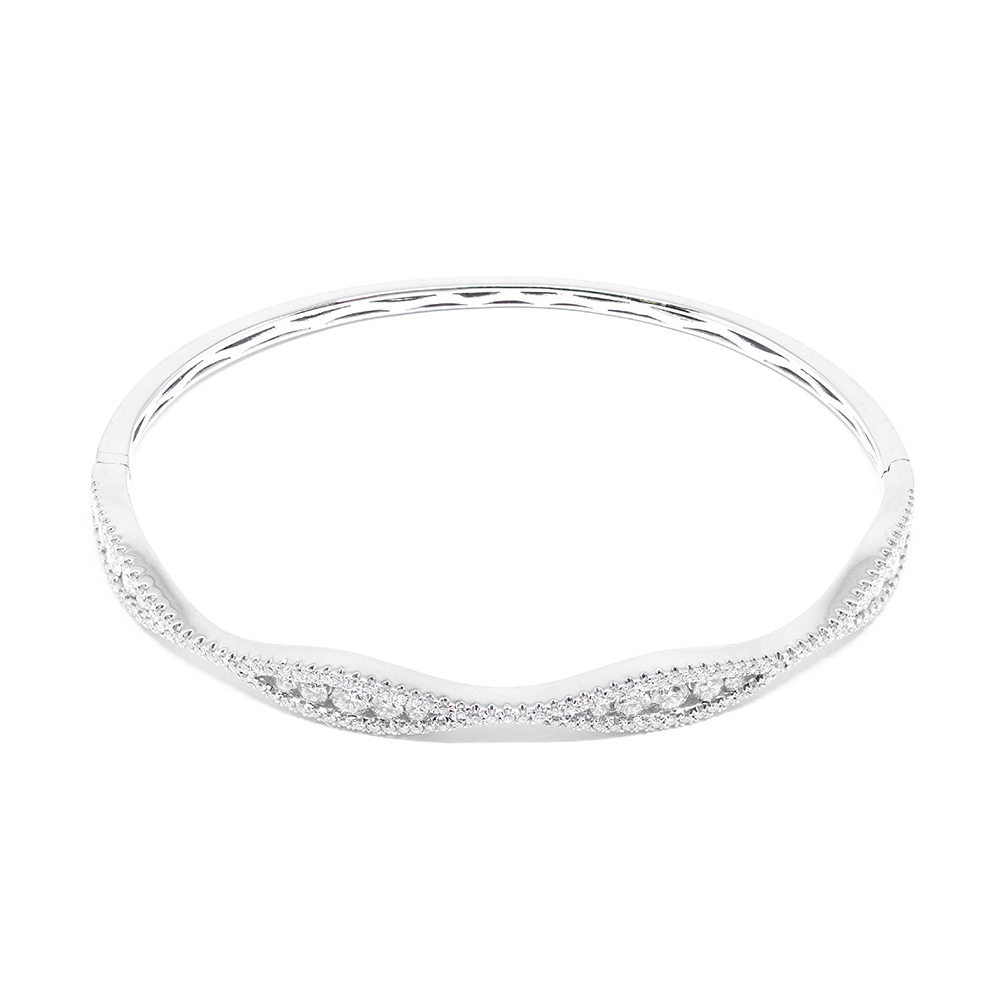 Fixed bangle bracelet in K18 white gold, with brilliant-cut diamonds and baquettes in an aristocratic style. A bracelet of eternal value for dazzling and timelessly elegant appearances. Diamonds total 2.33ct Wedding Collection