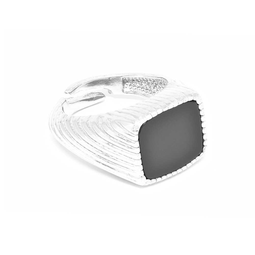 Men's ring in a square shape, unique carving on the sides and black enamel detail. A men's piece of timeless elegance that can be worn every day.