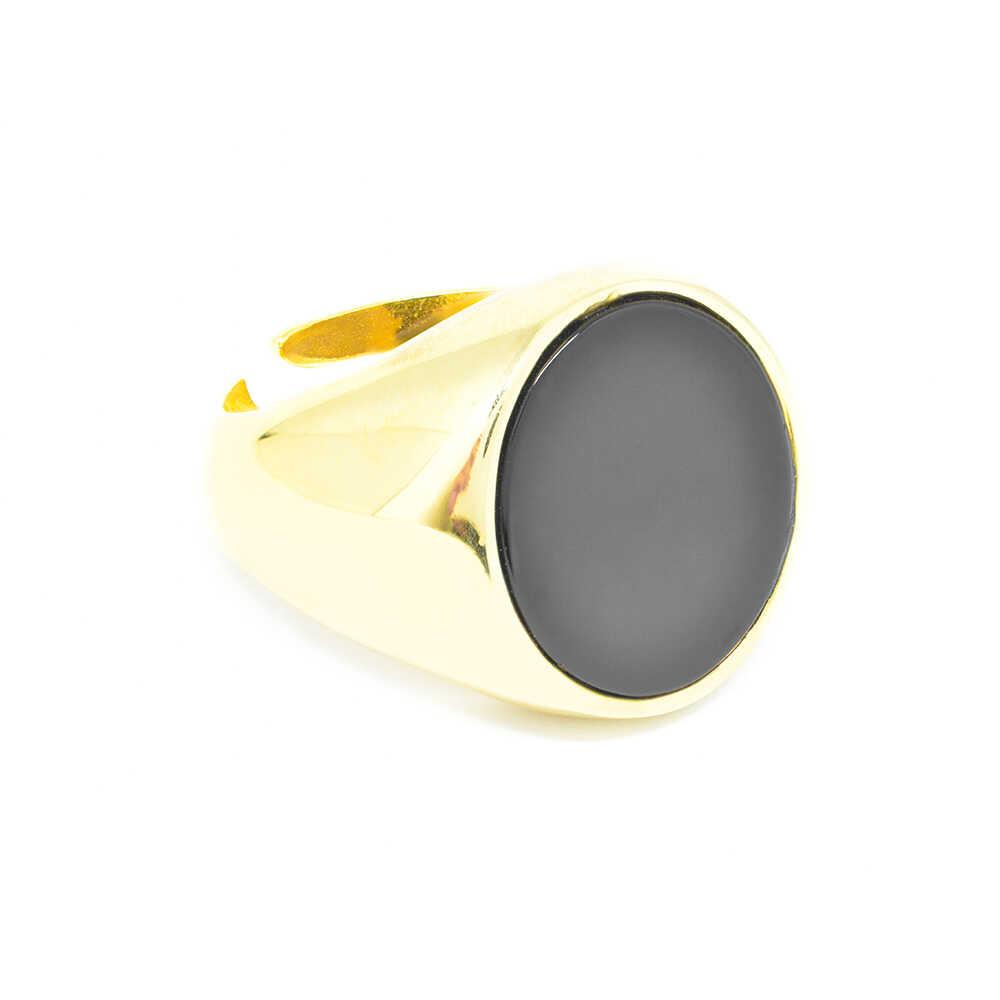 Men's ring with 18k yellow gold plating in an oval shape, minimal design and black enamel detail. A men's piece of timeless elegance that can be worn every day.