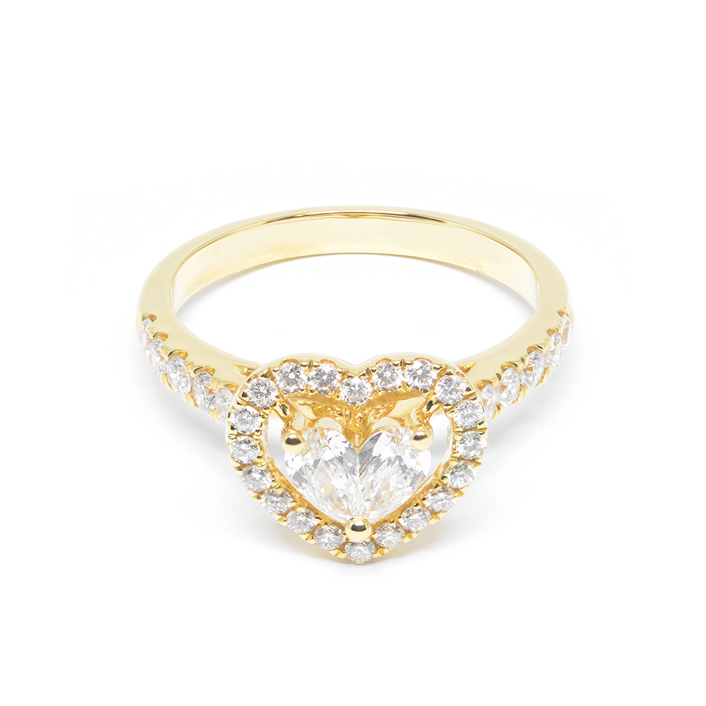 Lovely heart shaped diamond ring in 18k yellow gold
