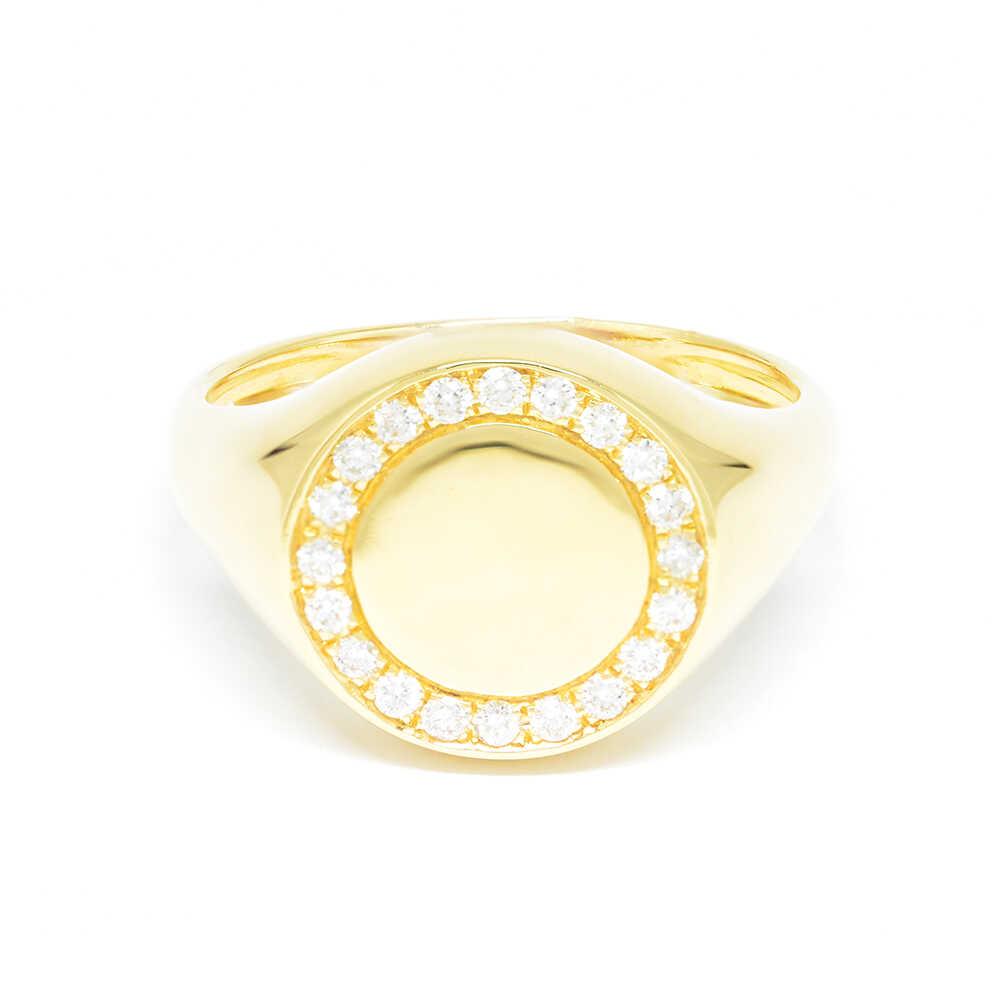 Ring in the shape of a circle from K18 yellow gold and a modern chic aesthetic design with brilliant-cut diamonds and made of gold in a special style, creating an impressive piece of jewelry. Ideal for all day elegant looks. Brilliants total 0.19ct. Wedding Collection.