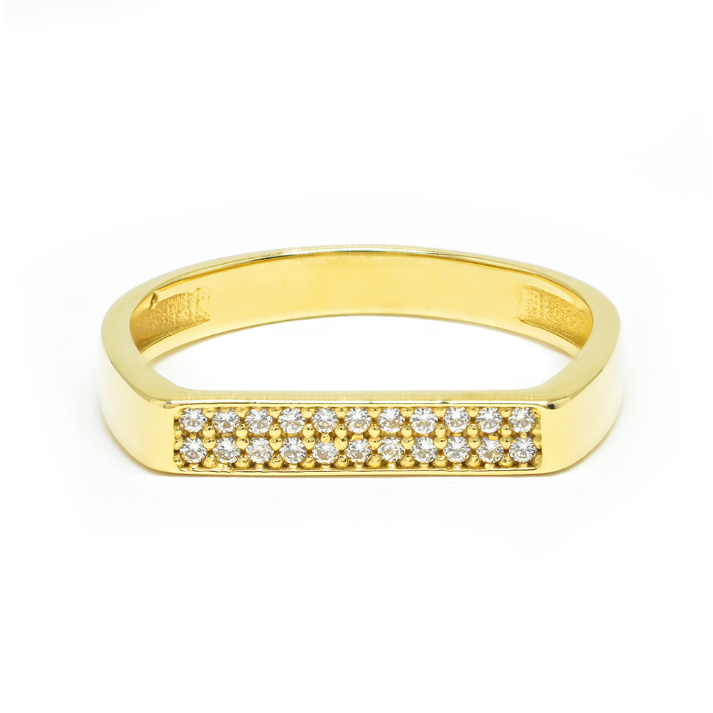 K14 yellow gold series ring in a particularly distinctive modern chic aesthetic design with cubic zirgons in impressive pave studding. Ideal for bright everyday and elegant looks. Wedding collection
