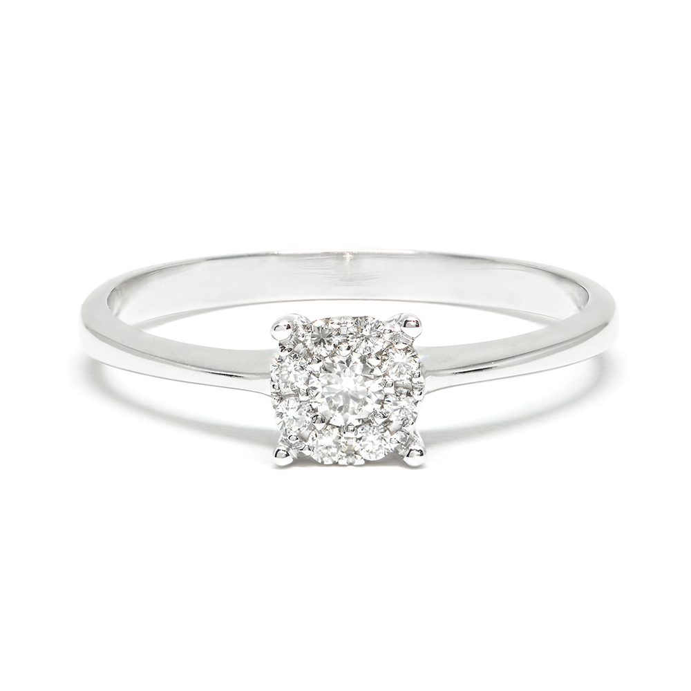 Single stone ring in white gold in an all time classic design with brilliant cut diamonds in an invisible setting. A jewel symbolic of timelessly sophisticated appearances. Brilliants total 0.15ct. Wedding Collection