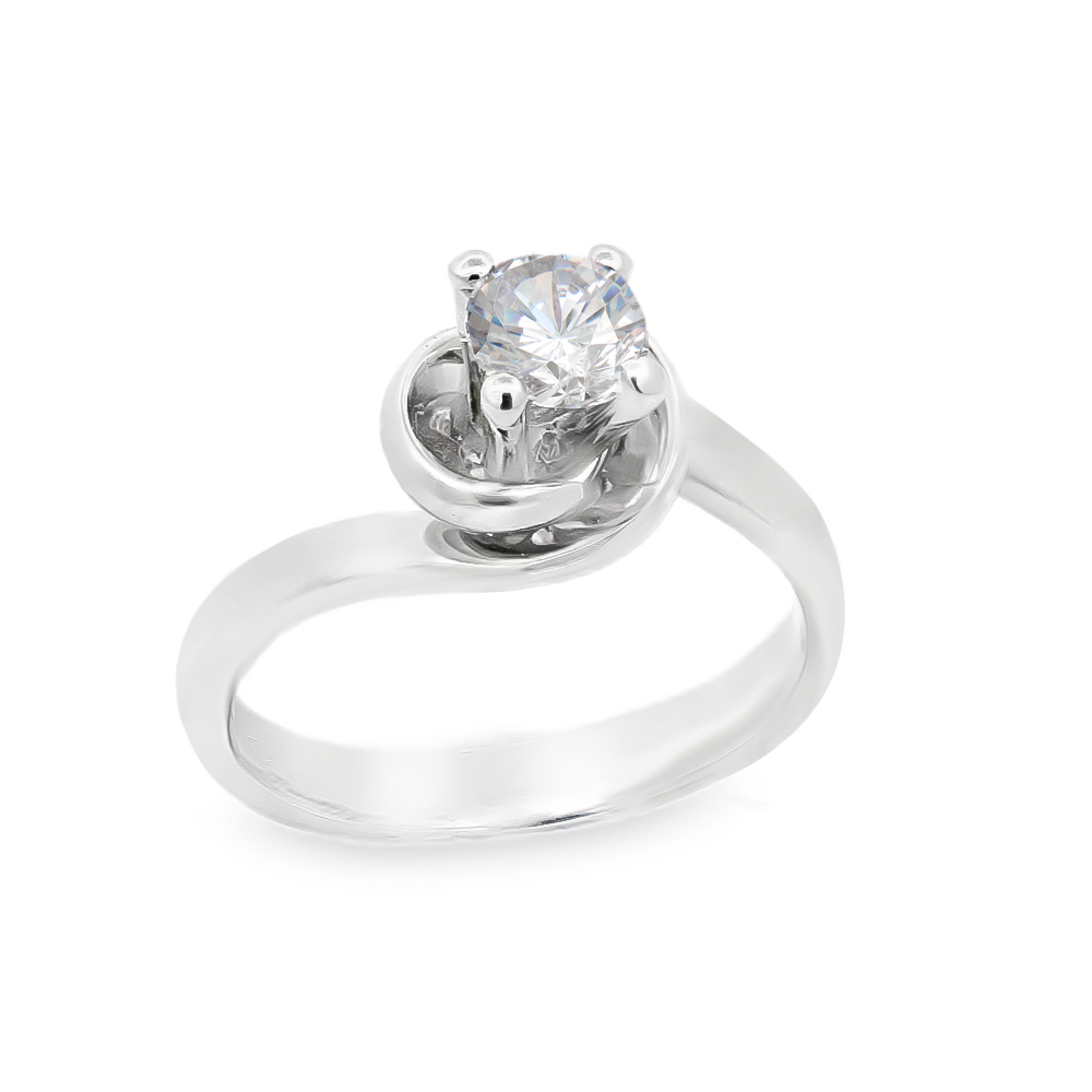 Single stone diamond ring in white gold in a modern chic design with a brilliant cut diamond placed in a uniquely classy and minimal frame. The diamond is accompanied by a certificate from the international gemological institute GIA where all the characteristics of the stone you choose are described in detail. Diam.0.46ct