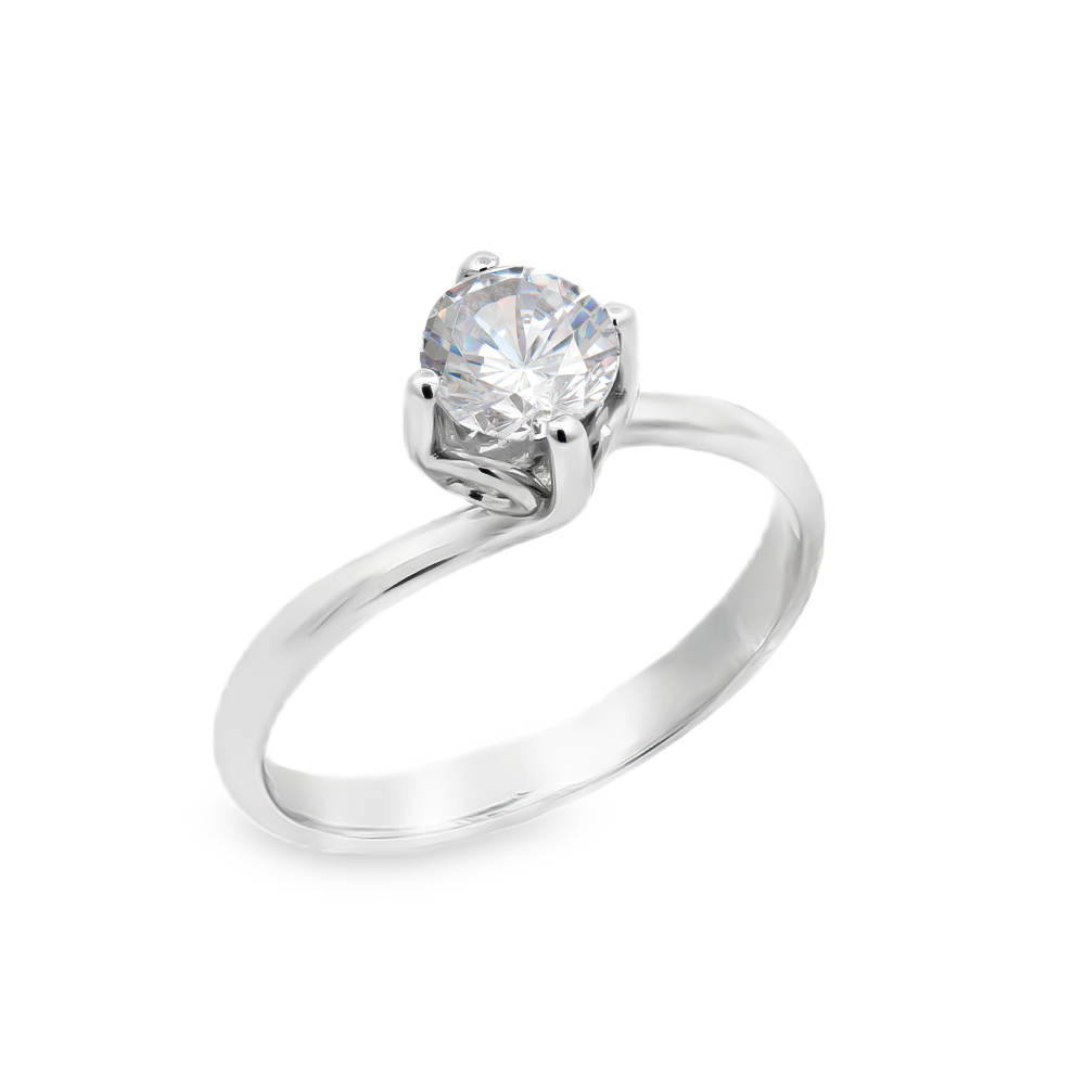 Single stone diamond ring in white gold in a modern minimal design with a brilliant cut diamond. A symbolic jewel of eternal value that stands out for its excellent design. Brilliant 0.38ct. The diamond is accompanied by a certificate from the international gemological institute GIA where all the characteristics of the stone you choose are described in detail.