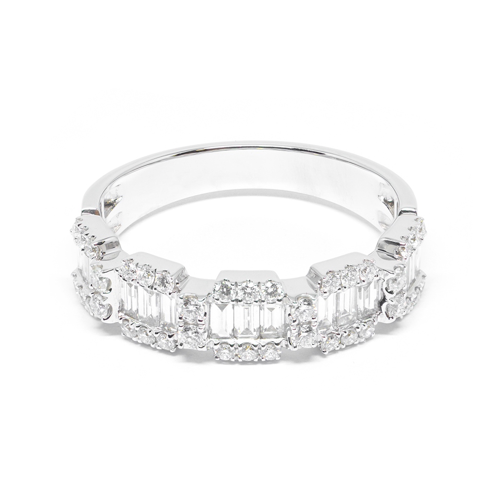 K18 white gold series ring in an excellent all time classic design with brilliant and baguette cut diamonds. Diamonds 1.00ct. Ideal for glamorous everyday and sophisticated looks. Wedding collection
