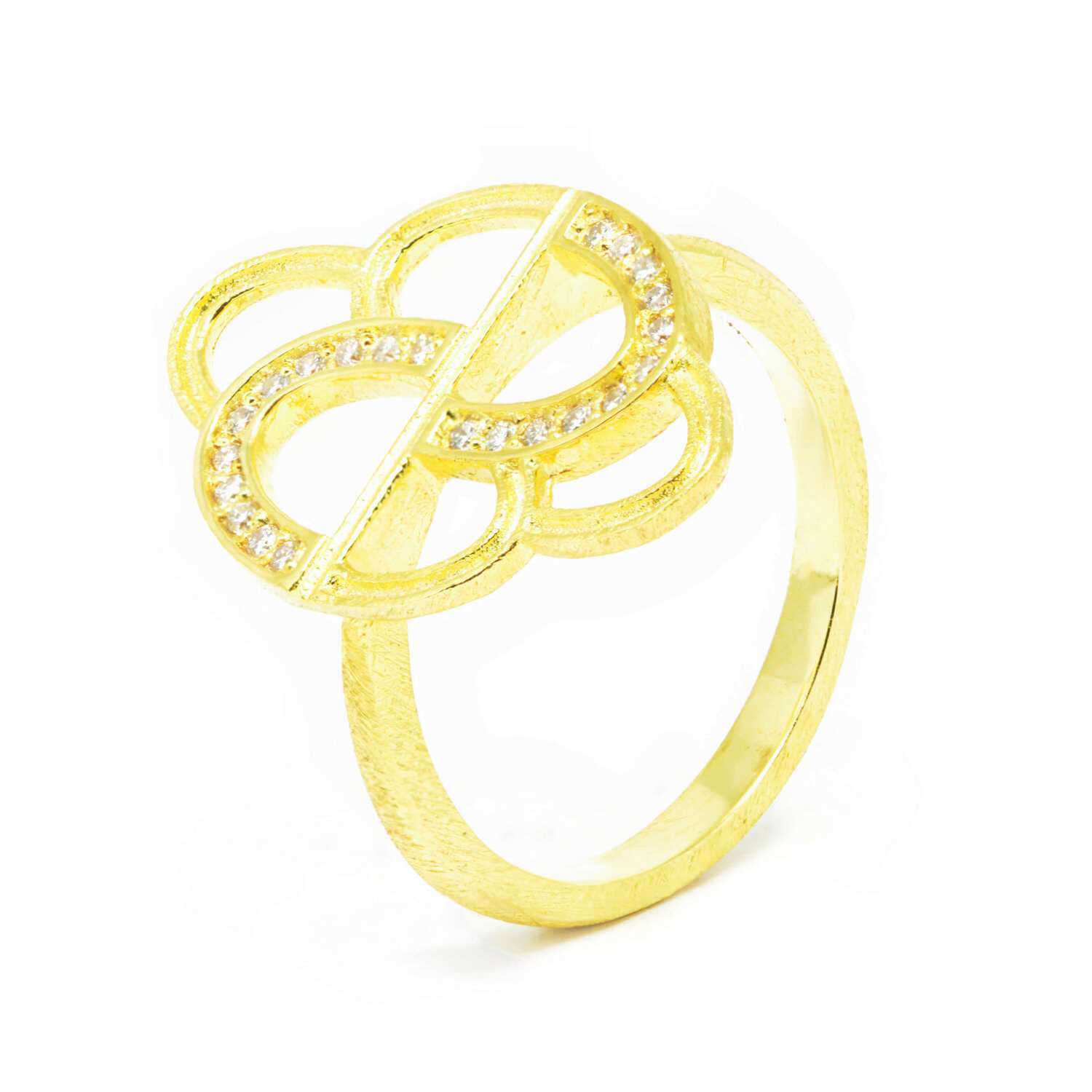Handmade matte satin gold ring in an exquisite design with diamonds. Ideal for everyday minimal chic looks. Brilliants total 0.11ct