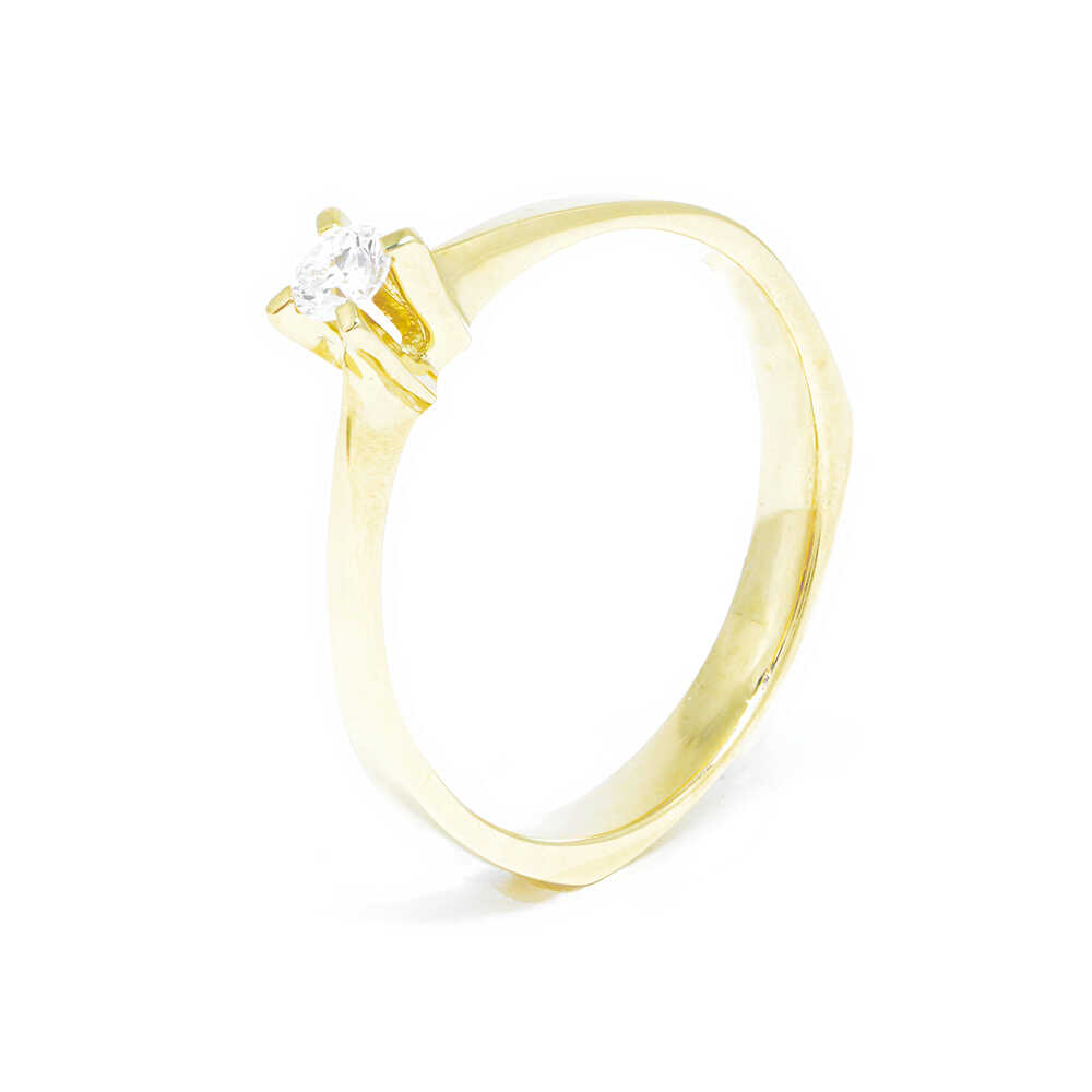 Single stone diamond ring in white gold in a minimal modern design with a brilliant cut diamond. A jewel-symbol of eternal value for dazzling and timelessly elegant looks. Diamond 0.12ct./clarity VS/Colour F