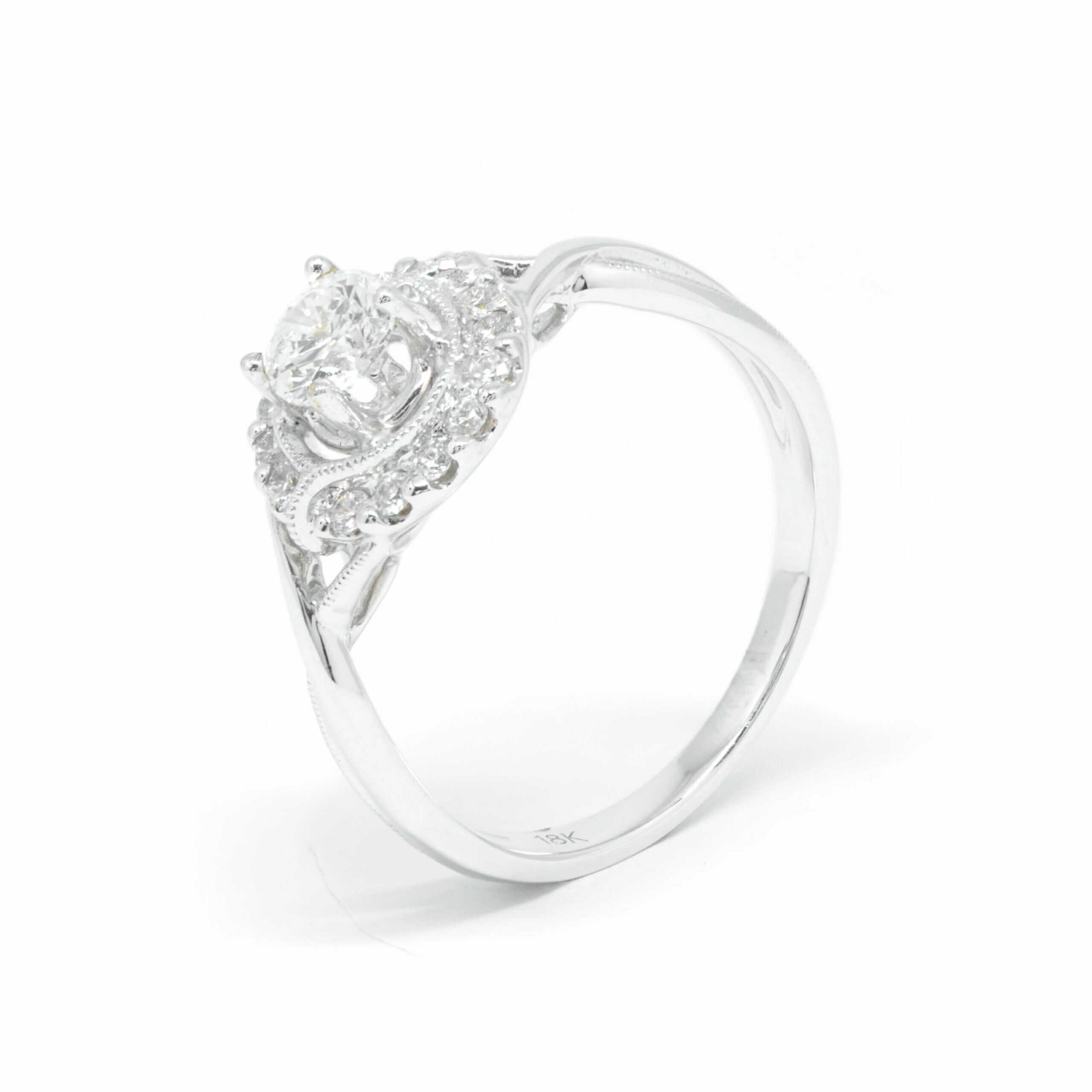 Single stone ring. Single stone with a brilliant-cut diamond and ring – framework adorned with smaller brilliant-cut diamonds. 1 Brilliant :0.36ct Clarity :VVS1 Color :E Remaining Brilliants :0.18