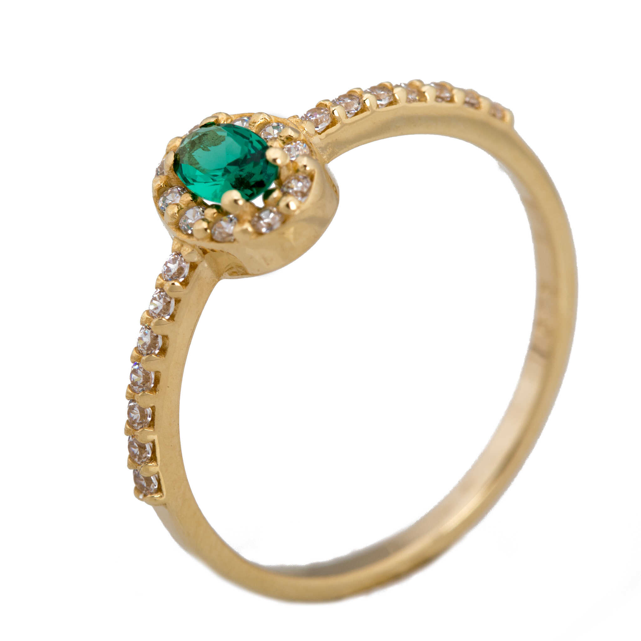 Ring in yellow gold rosette in a unique classy design with a green zirgon in an oval cut and extremely shiny details on its rim and on the sides thanks to the cubic zirgons. Ideal for everyday use and timeless glamorous looks.