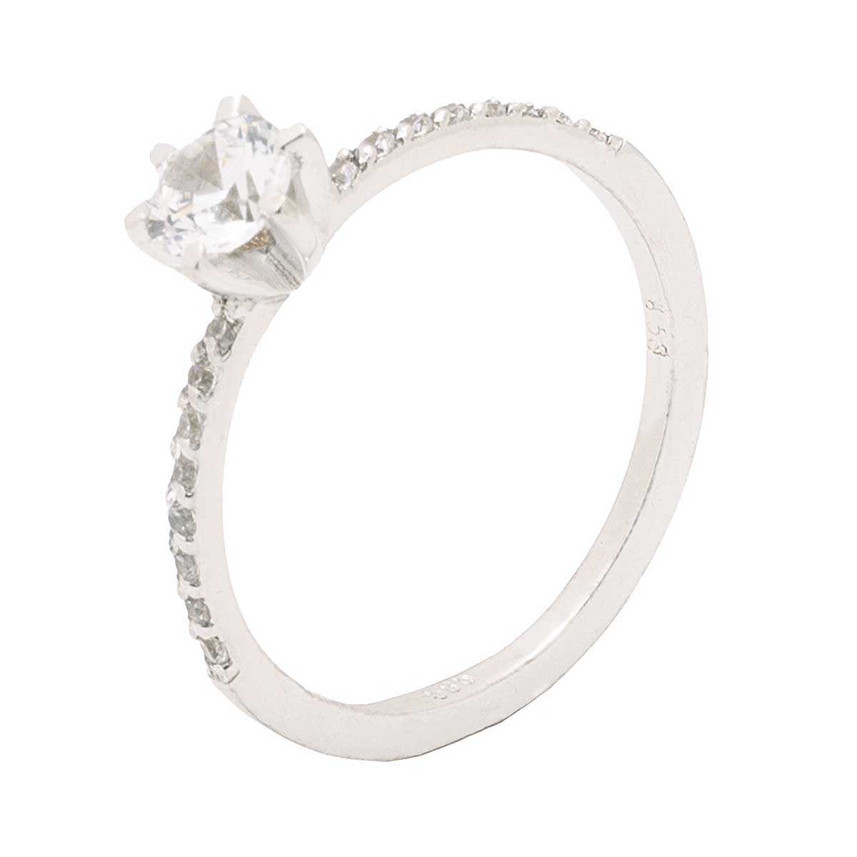 Single stone ring in white gold in a uniquely impressive design cubic zirgon design and wonderful shiny details from zirgons. A symbolic piece of jewelry ideal for glamorous timeless looks.