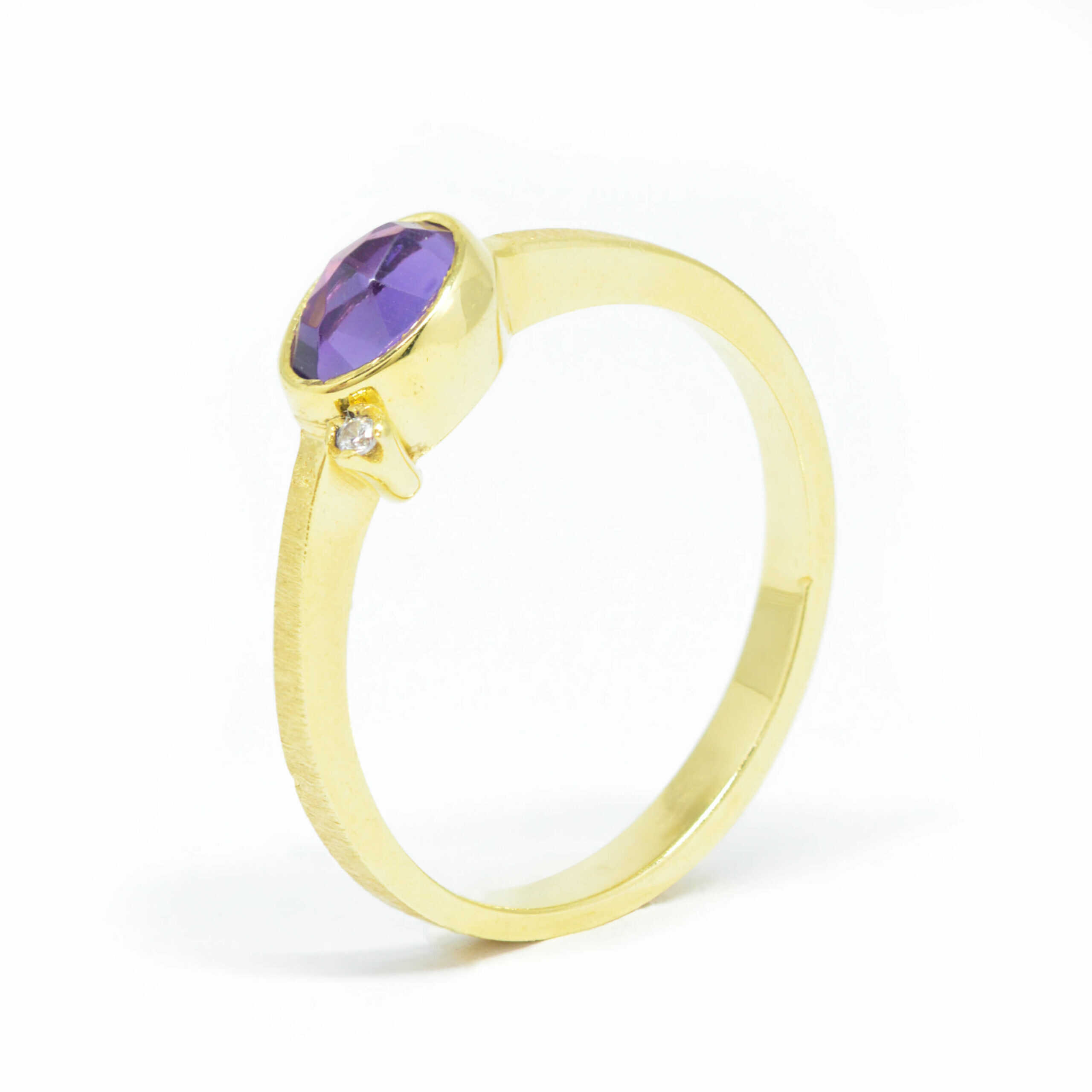 Gold ring with a matte saree amethyst finish and shiny cubic zirgon detail in a modern chic design. Ideal for everyday elegant fashion appearances from morning to late night.