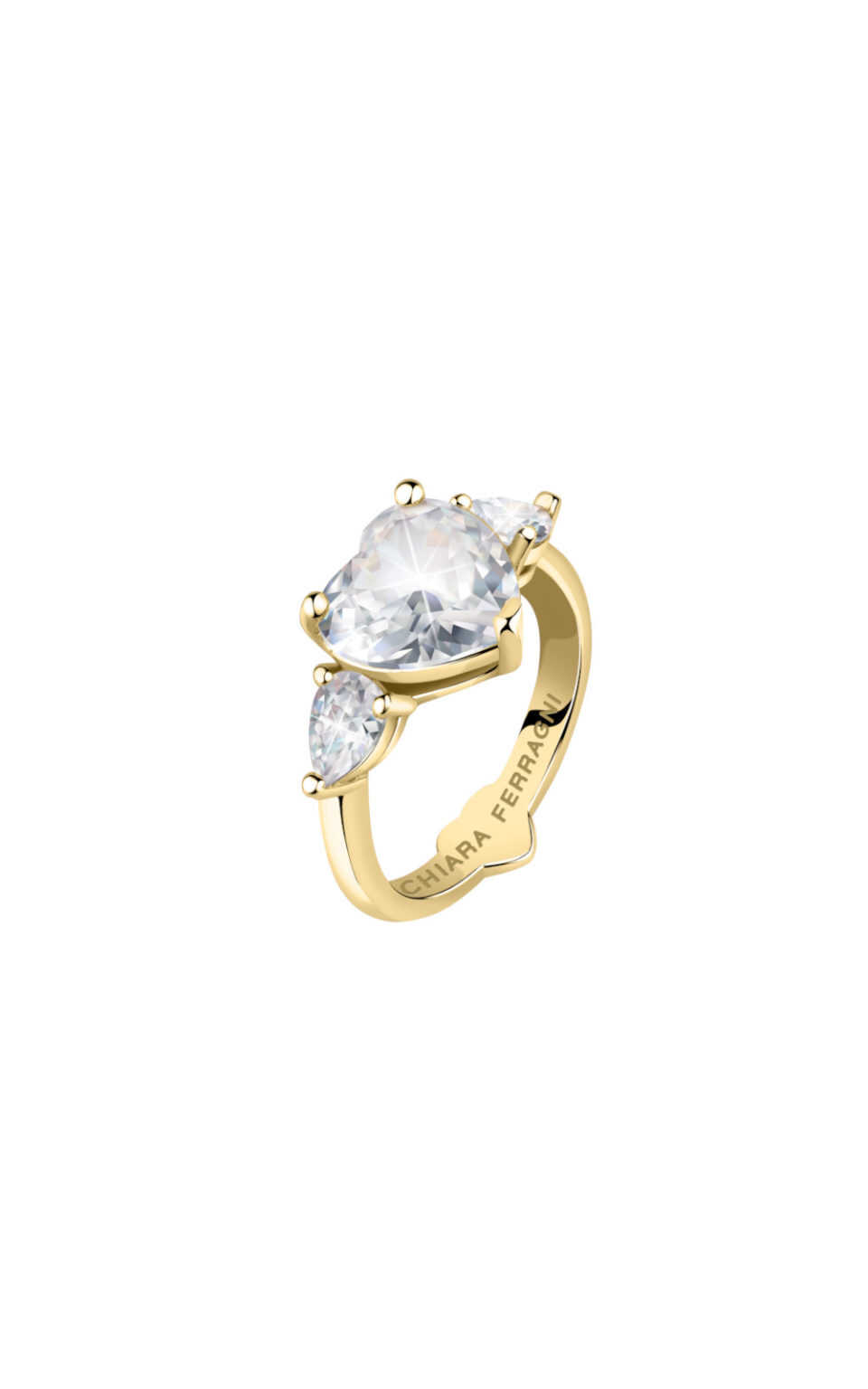 Women's ring in gold color with heart design in white color. The Diamond Heart Collection exudes the romance that characterizes the brand. Cubic zirconia hearts in sapphire blue, emerald and fairy pink hues perfectly decorate all the elegant necklaces, bracelets, earrings and rings in the collection.Comes with a CHIARA FERRAGNI packaging box and a 2 YEAR WARRANTY from the official CHIARA FERRAGNI dealership.
