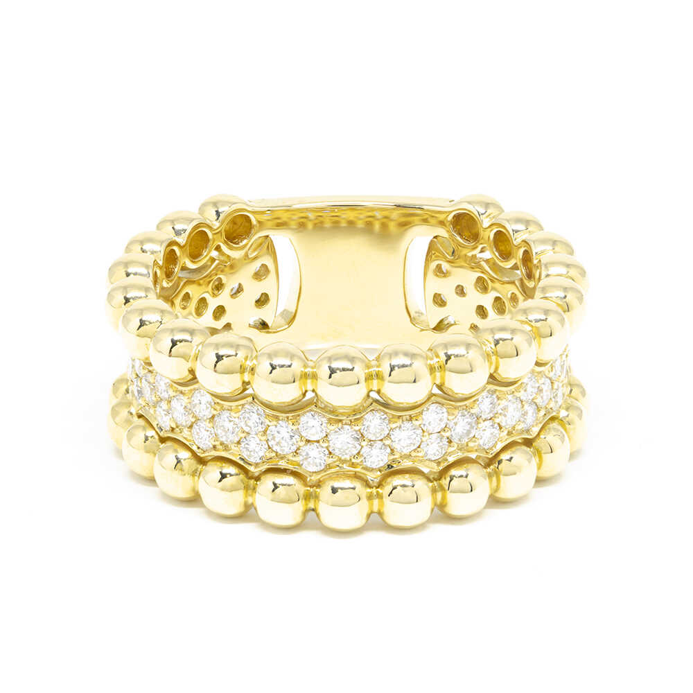 Impressive ring in 18K yellow gold modern chic design from the Bouboulette collection of the Italian high jewelry house Casato with brilliant cut diamonds in pave setting. A special piece of jewelry for all day chic and cocktail looks. Brilliants total 0.71ct