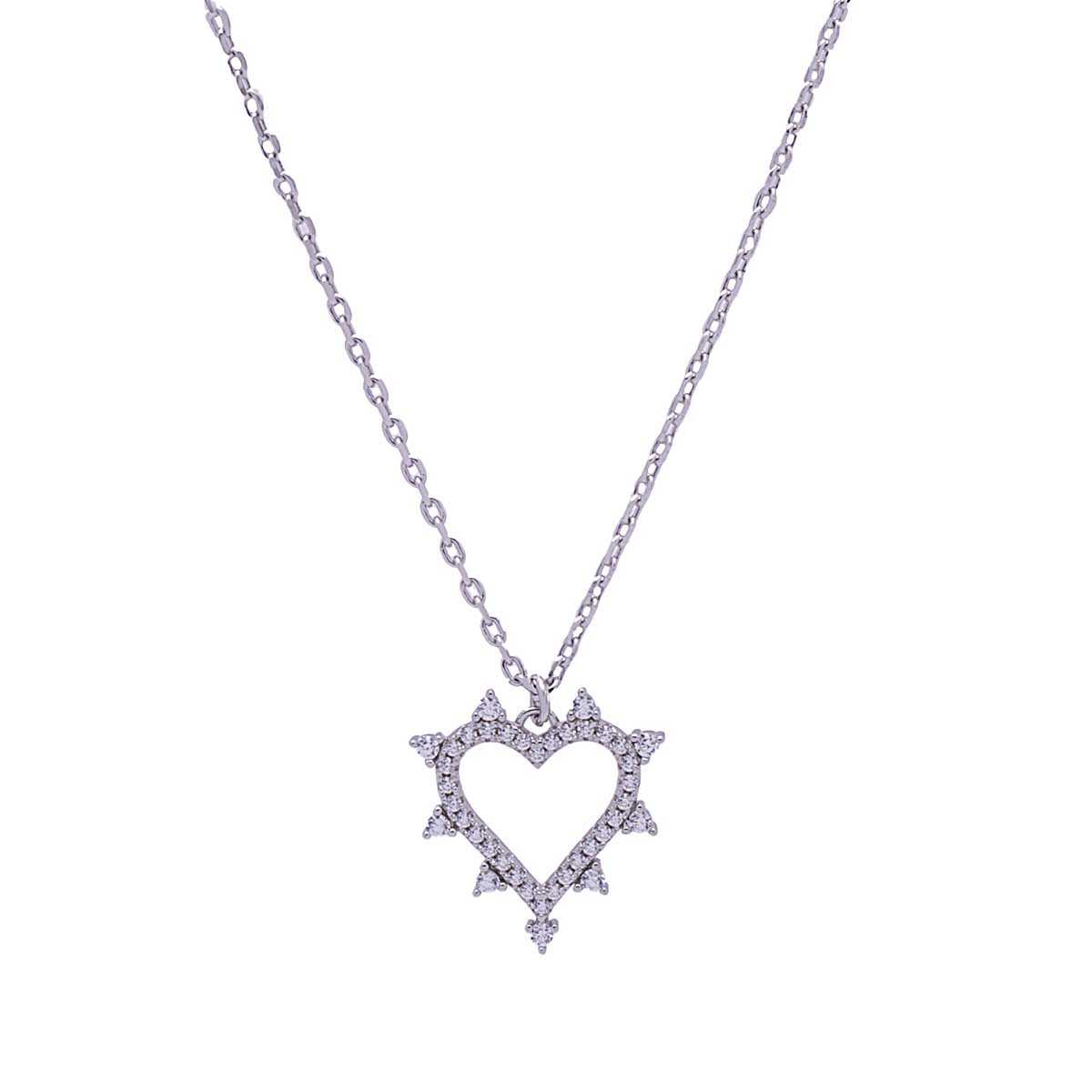 Silver necklace with a heart motif decorated with cubic zirgons and K18 white gold platinum plating. A jewel with wonderful sparkles for urban chic and girly looks.