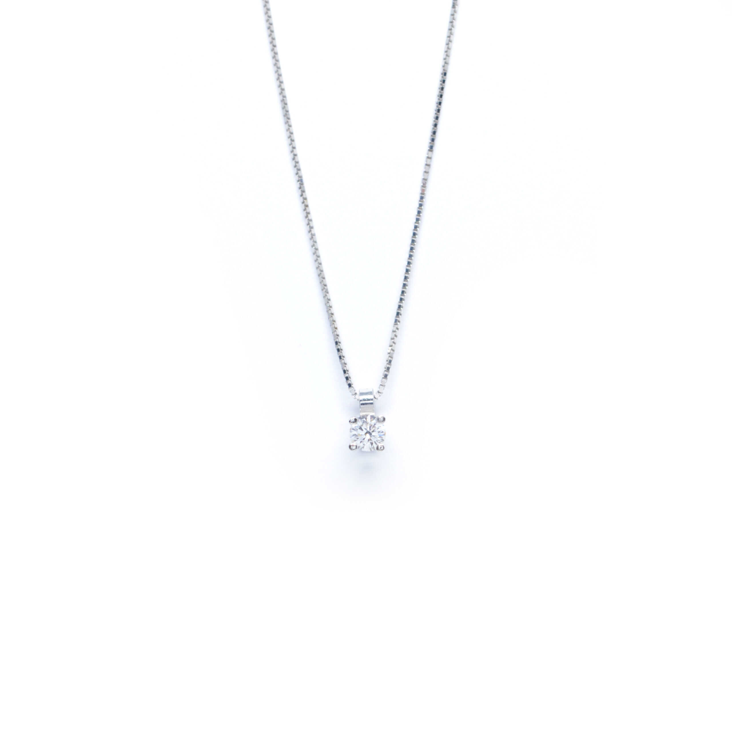 Necklace with single stone brilliant cut diamond.1 Brilliant 0.15ct VS Color F.