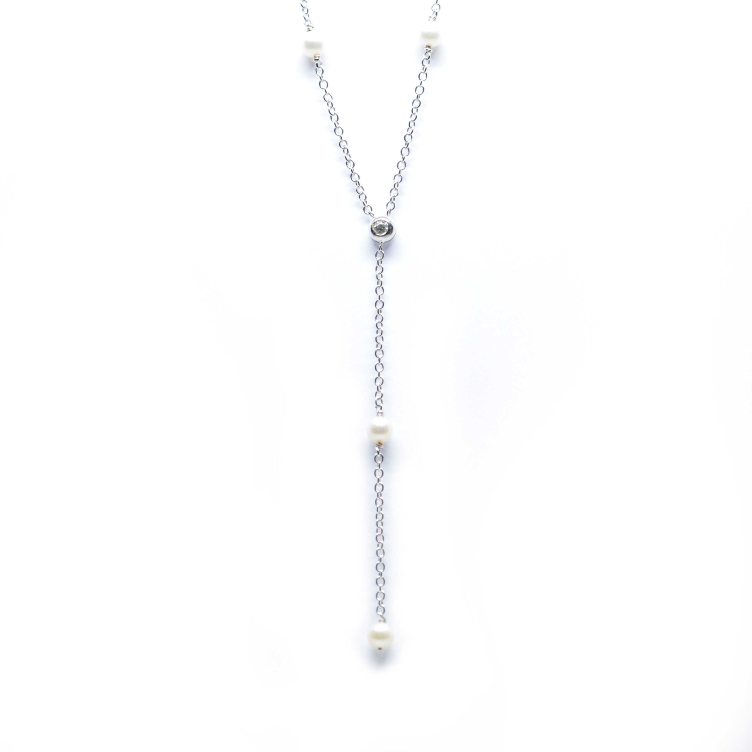 Necklace chain with pearls and brilliant-cut diamond nova stone. 1 Brilliant 0.10ct, Pearls 4mm.