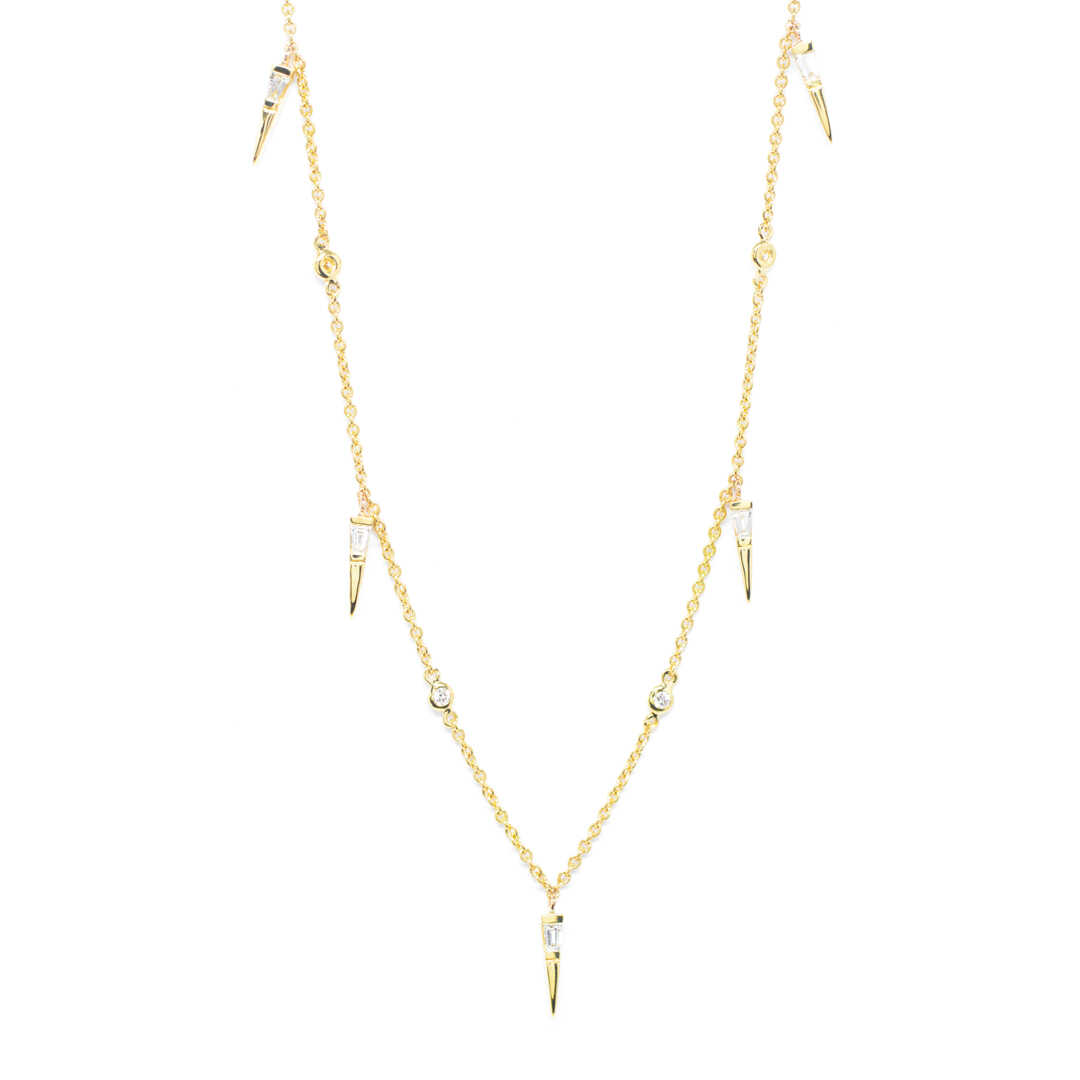 K18 yellow gold necklace in a minimal design with repeating geometric motifs with brilliant cut diamonds. Ideal for layering and all day elegant chic looks. Brilliants' total 0.40ct. WEDDING COLLECTION