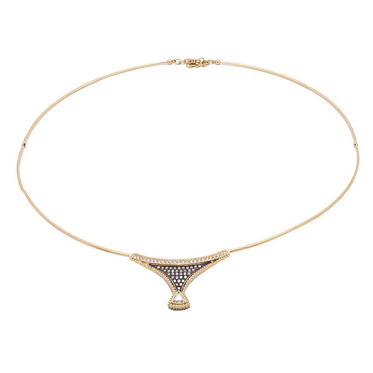 Solid K18 yellow gold necklace-necklace in minimal design and sophisticated geometric line decorated with brown brilliant cut diamonds and 1 single navette cut stone. Ideal for timelessly elegant looks. Brown diamonds 0.27ct. 1 Diamond 0.19ct