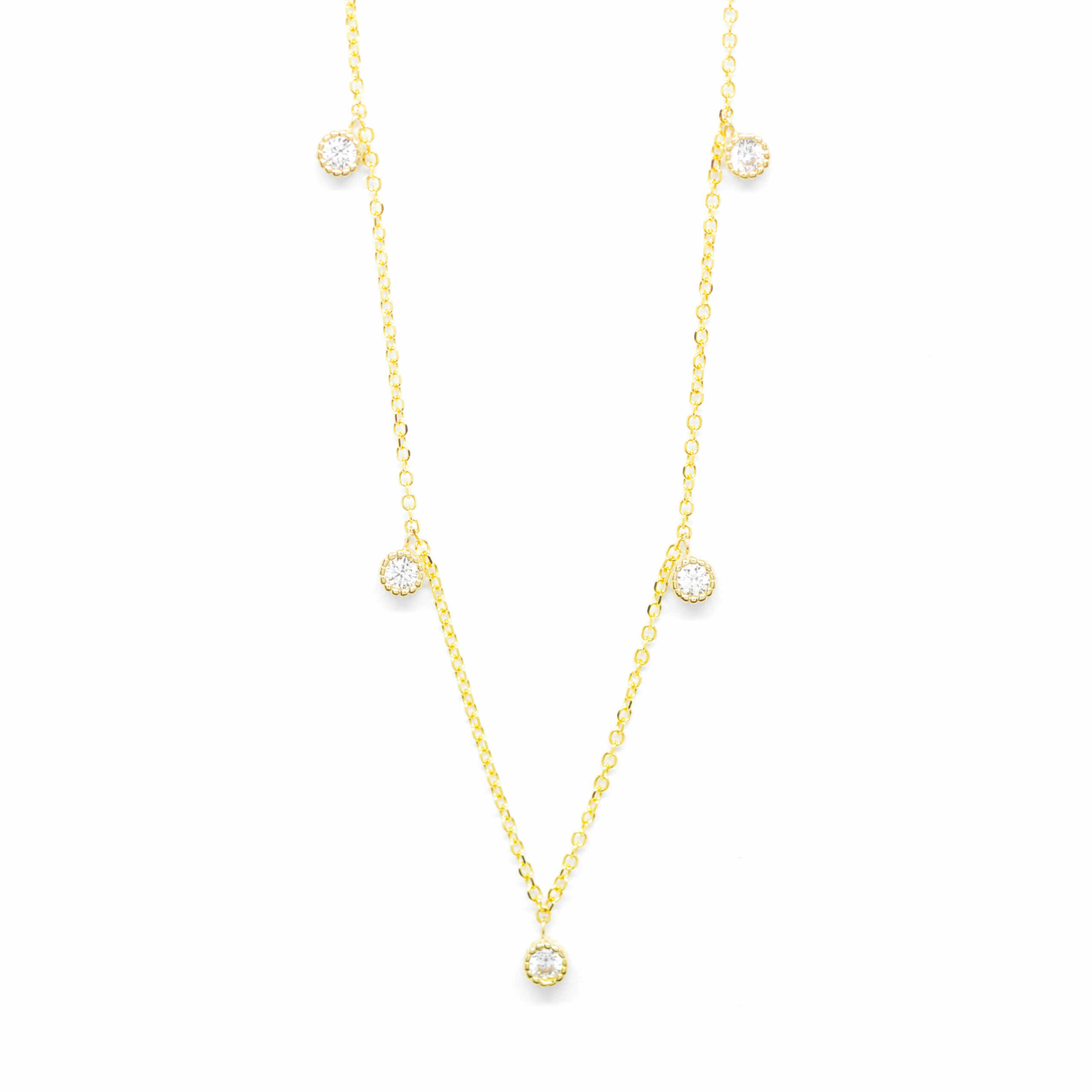 K14 yellow gold necklace with chain and pendant single stone zirgons in a geometric line with exceptional luster. Ideal for layering and everyday minimal chic looks.