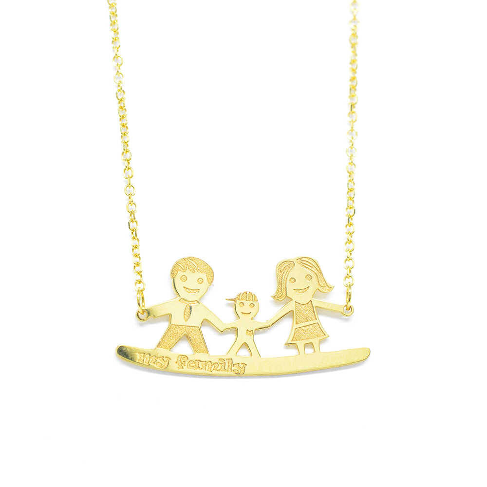 K14 yellow gold necklace with my family motif in an extremely original design. Ideal as a gift for mom and for everyday elegant looks.