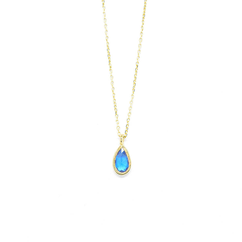 K14 yellow gold necklace in a minimal design with a drop shape motif with a cabochon-cut blue sapphire. Ideal for layering and all day chic looks.