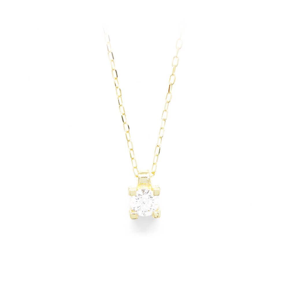 K14 yellow gold necklace with chain and single-stone pendant in a square shape with a minimal aesthetic from cubic zirgon. Ideal for layering and everyday timelessly elegant looks.