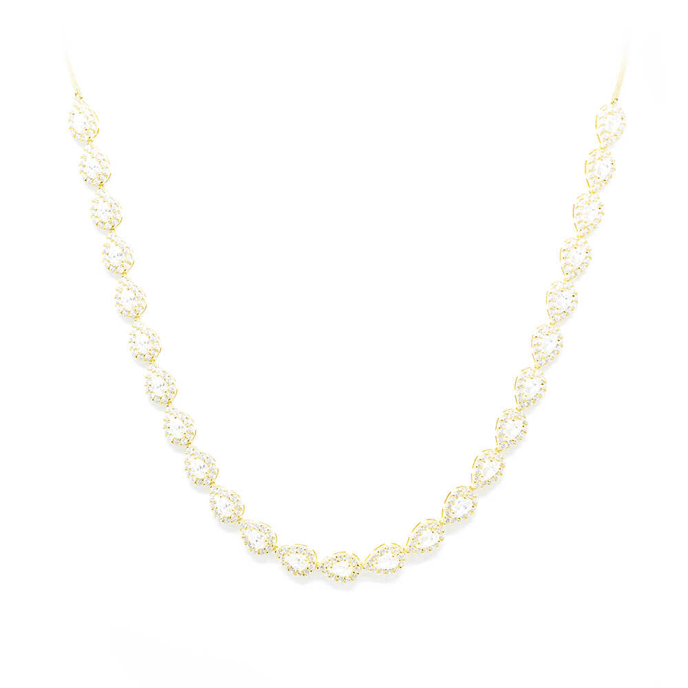 Necklace-necklace in yellow gold K14 in an elegant design with extremely shiny details of repeated retro chic drop-shape motifs. Ideal for timeless sophisticated looks. Wedding Collection