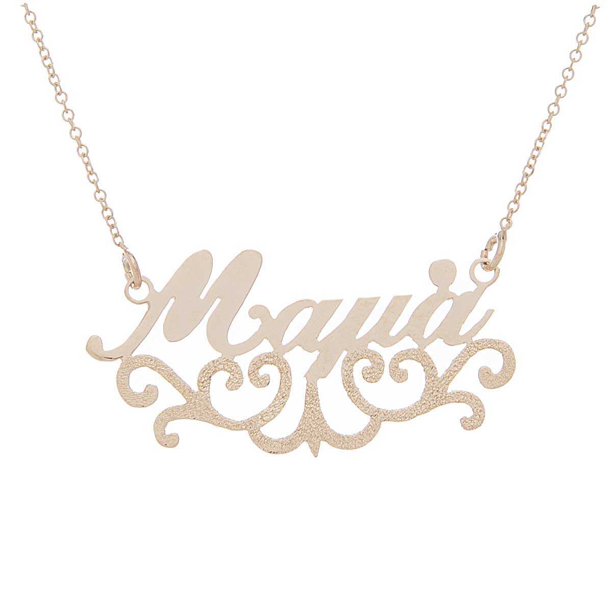 MAMA yellow gold necklace in uniquely carved perfore frame. A wonderful special piece of jewelry for life's important moments.