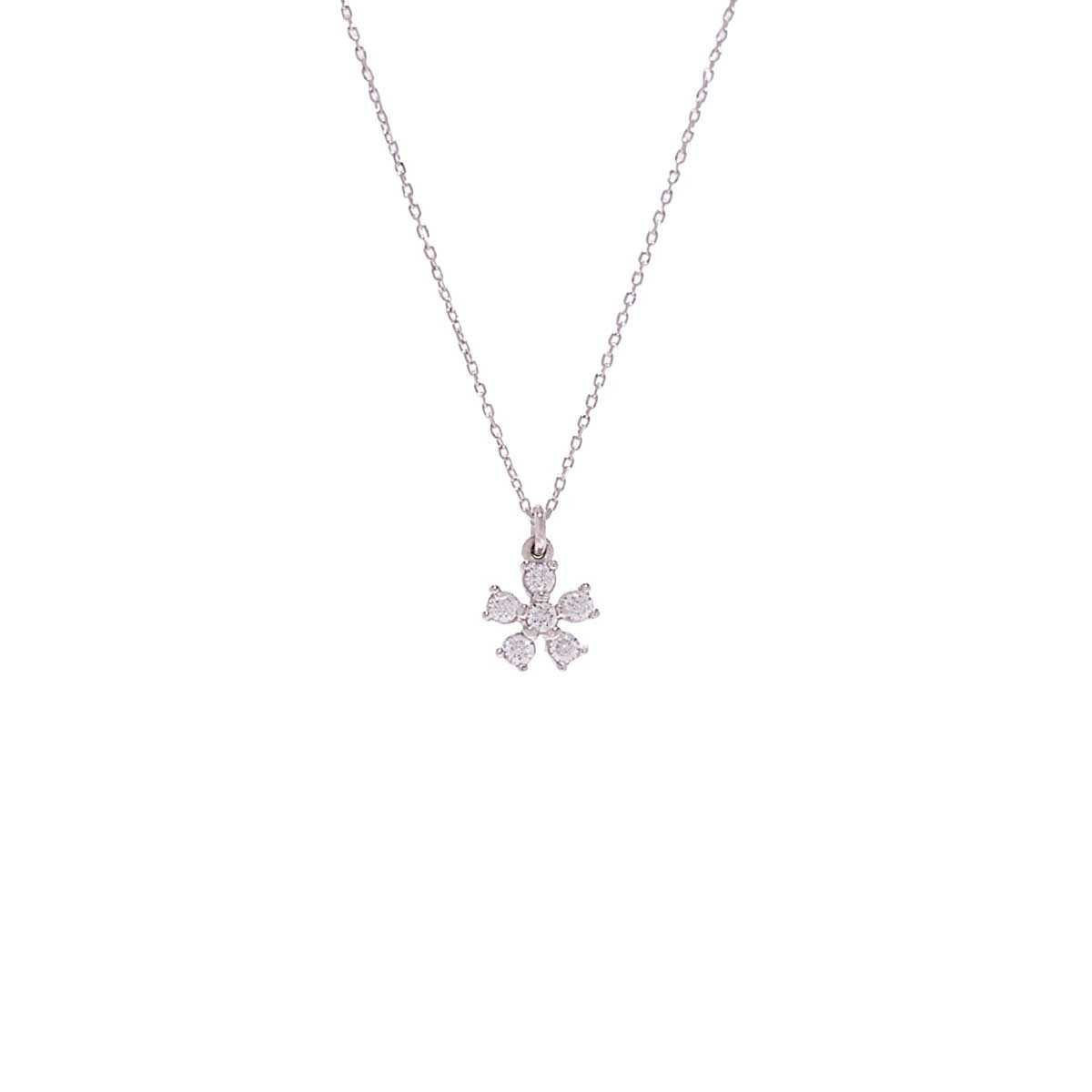 K14 white gold necklace with a chain and a fancy flower in a classy design with a wonderful shine of cubic zirgons. Ideal for timeless elegant chic looks.