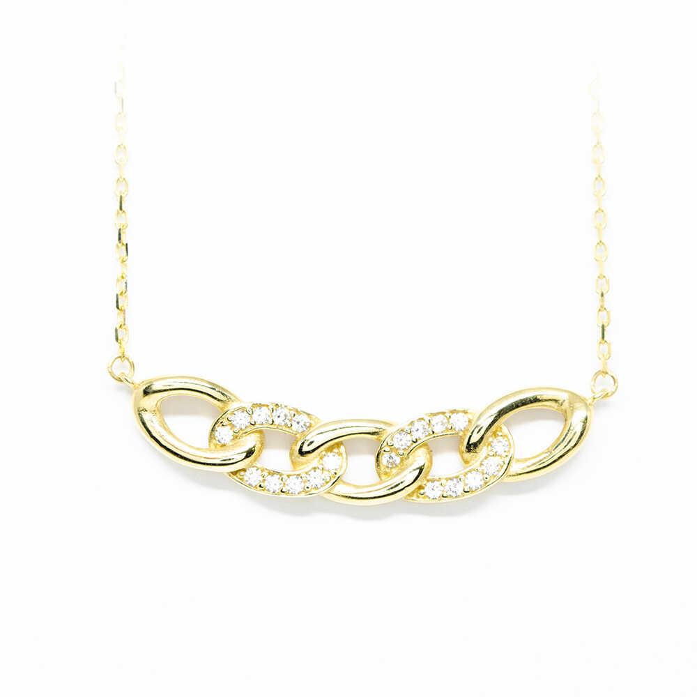 K14 yellow gold necklace with chain and gourmet chain design adorned with shiny cubic zirgons. Ideal for layering and everyday urban chic looks.