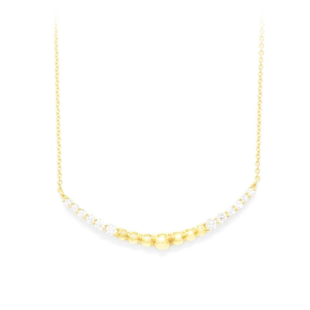 Necklace made of yellow gold K18 and modern chic aesthetic design with brilliant cut diamonds and made of gold in the form of bubbles that will emphasize the contemporary look of every woman. Ideal for all day elegant looks. Brilliants total 0.26ct.
