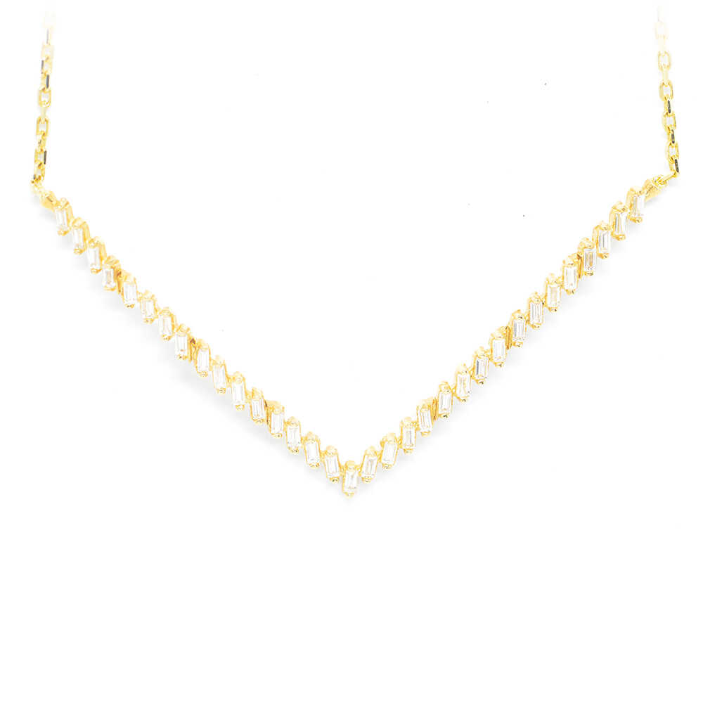 Necklace-necklace in yellow gold K14 and elegant design with extremely bright details of art deco motifs with white baquet zirgons. Ideal for timeless sophisticated looks. Wedding Collection