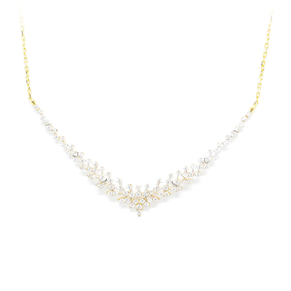 Necklace-necklace in yellow gold K14 and elegant design with extremely bright details of art deco motifs with white cubic zirgons. Ideal for timeless sophisticated looks. Wedding Collection