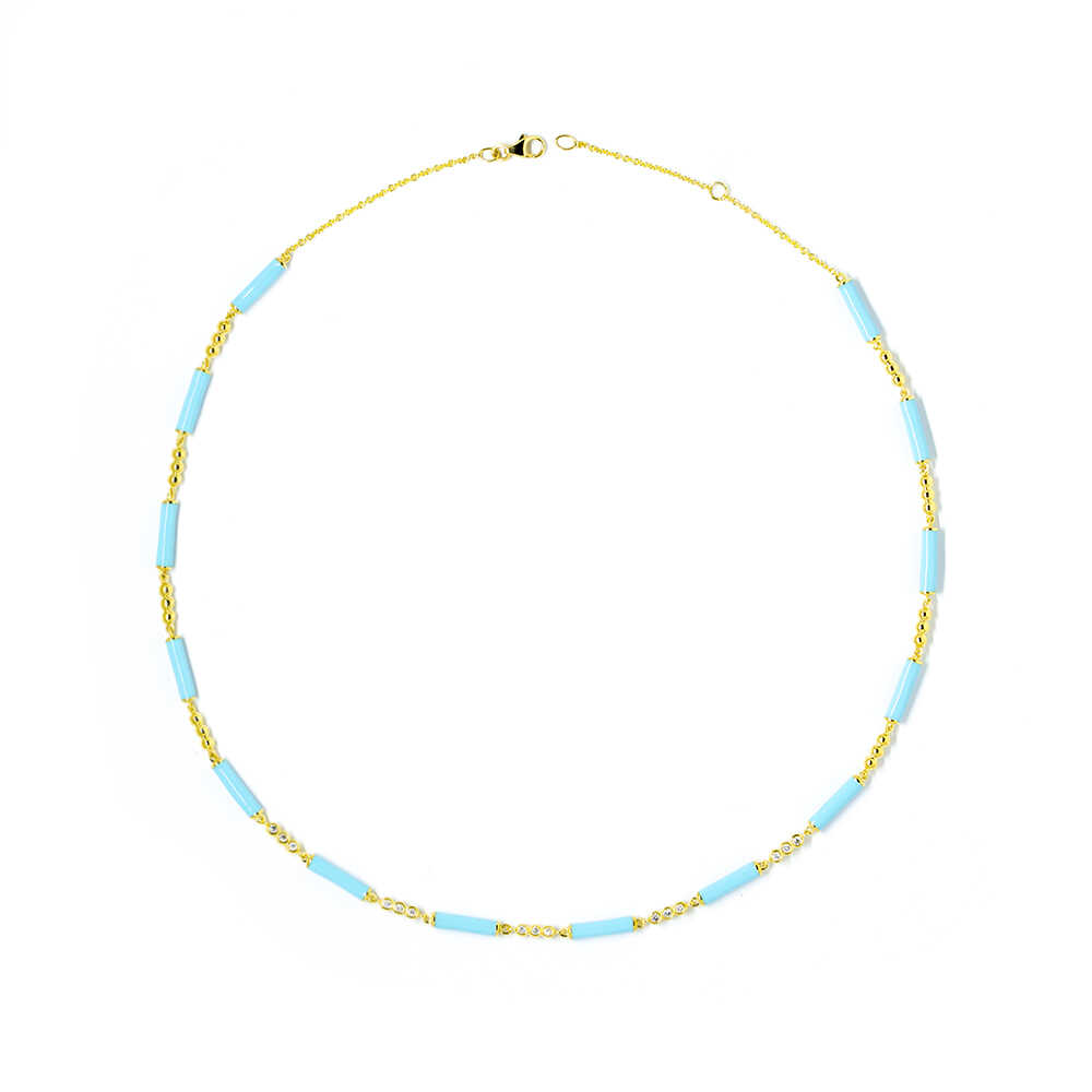 Riviera style necklace in 18k gold with Turquoise and diamonds