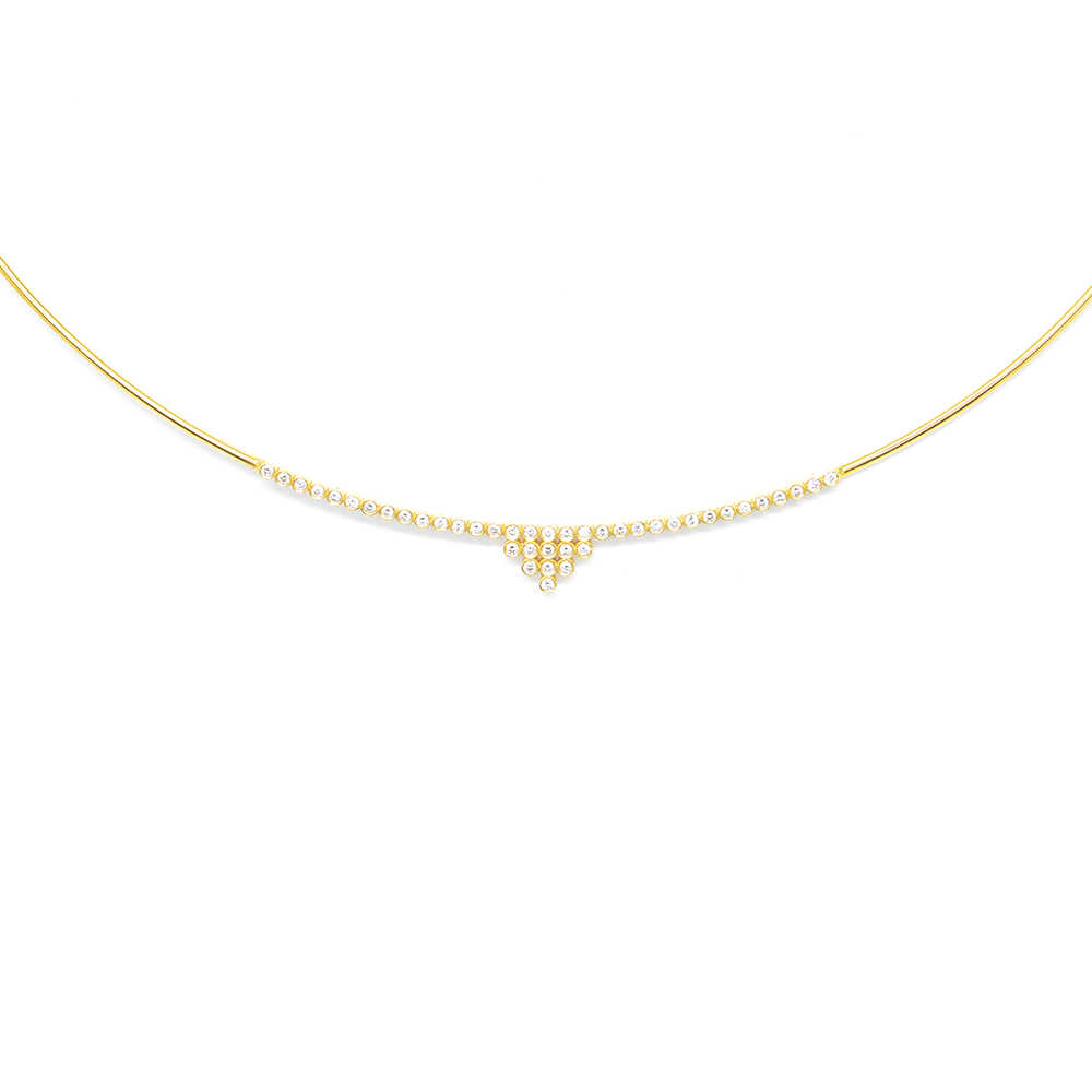 Necklace-necklace fixed in yellow gold K18 in minimal design and refined geometric line decorated with brilliant cut diamonds. Ideal for timeless elegant looks. Wedding Collection.