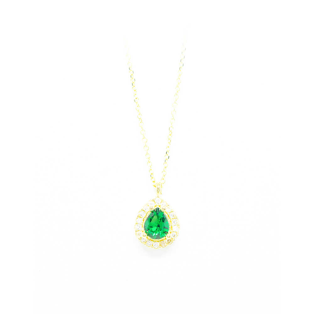 K14 yellow gold necklace with chain and patative rosette in a classy teardrop design with a wonderful sparkle of cubic zirgons and green cubic zirgon in the center. Ideal for timeless and elegant chic looks.