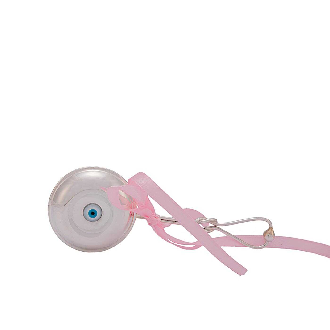 Silver rattle with a decorative mother-of-pearl eye and a handmade handle in the shape of a knot. A unique gift idea for birth, christening or children's birthday that will stand out and be a wonderful keepsake.