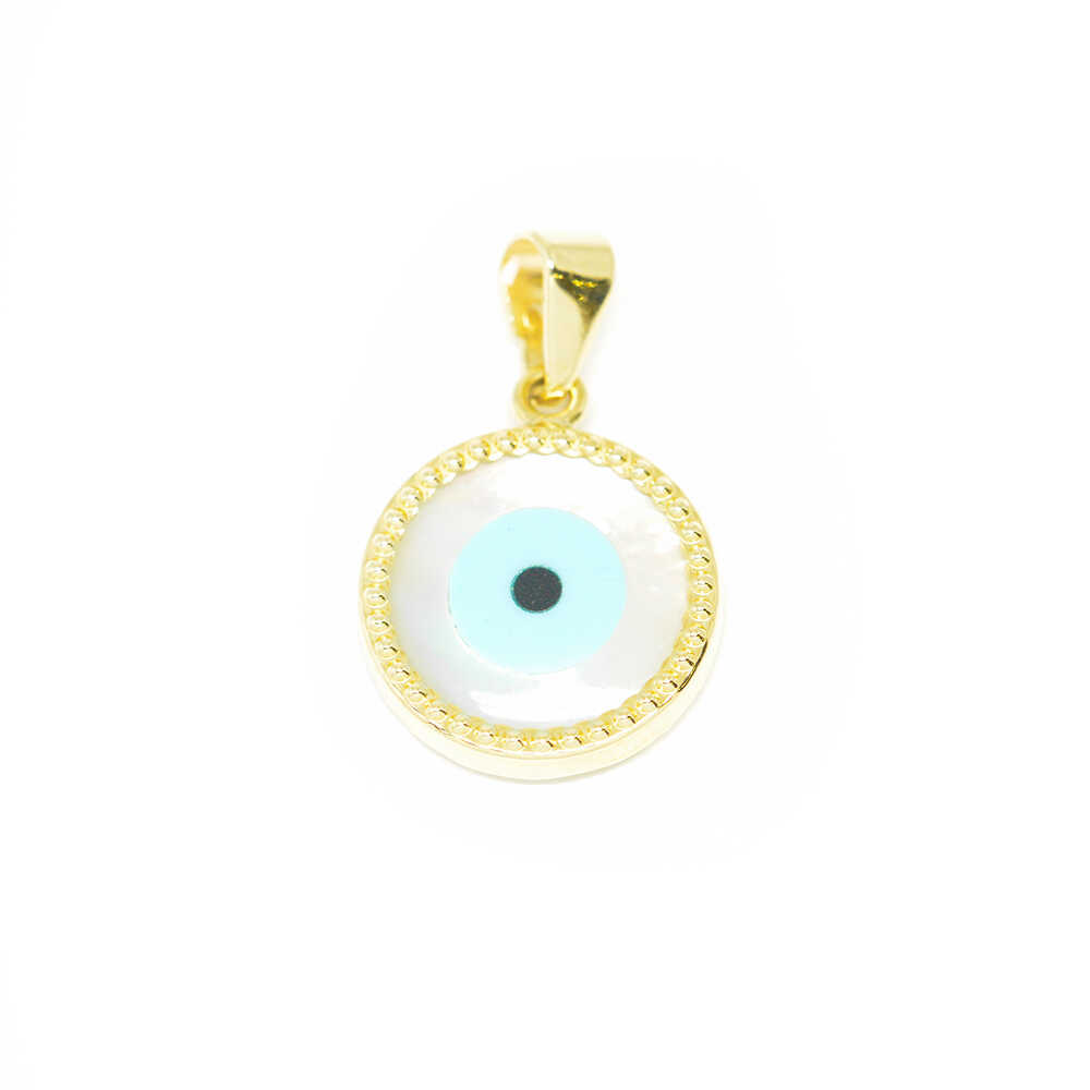 Yellow gold pendant with mother of pearl eye set in a refined frame.