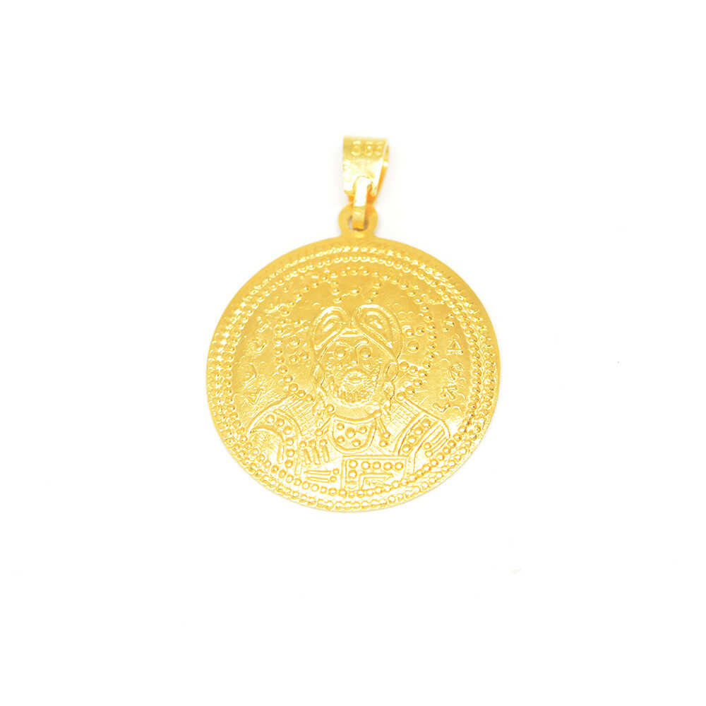 Constantinato pantaf handmade in matte yellow gold with unique embossed details in an oval shape. A timeless piece of jewelry for all day chic looks. Also ideal for children's jewelry.