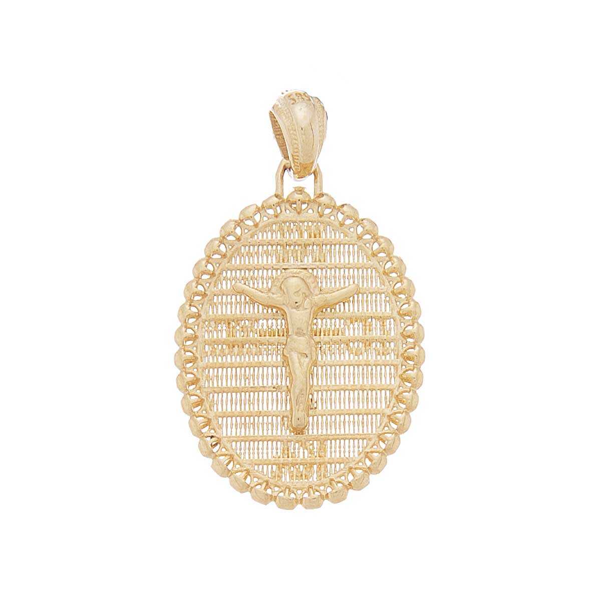 Constantinato pantafif handmade in matte yellow gold in an oval shape with embossed details that can be worn on both sides. A timeless piece of jewelry for all day chic looks. Also ideal for children's jewelry.