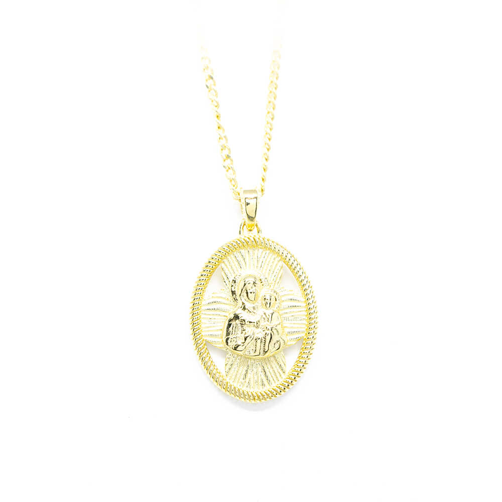 Panagitsa pantaf handmade in yellow gold mat in an oval shape and unique embossed details that can be worn on both sides. A timeless piece of jewelry for all day chic looks. Also ideal for children's jewelry.