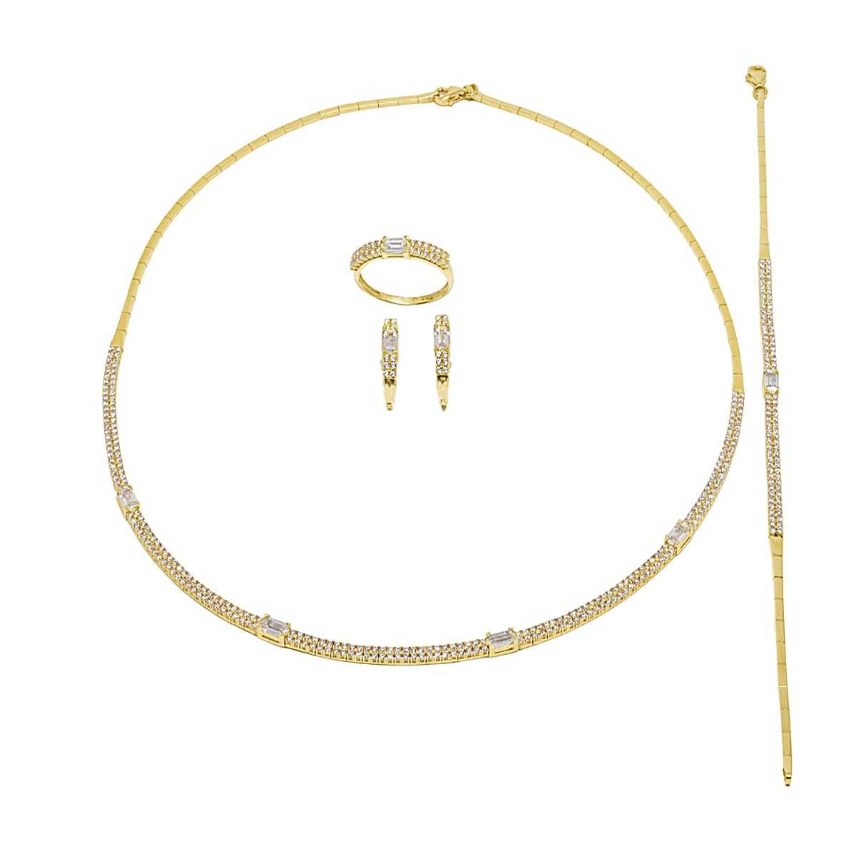 K14 yellow gold jewelry set in a classy design with a pattern of cubic zrgons in baquette cut. A set of timeless elegance and glamor for looks that will make you stand out. WEDDING COLLECTION