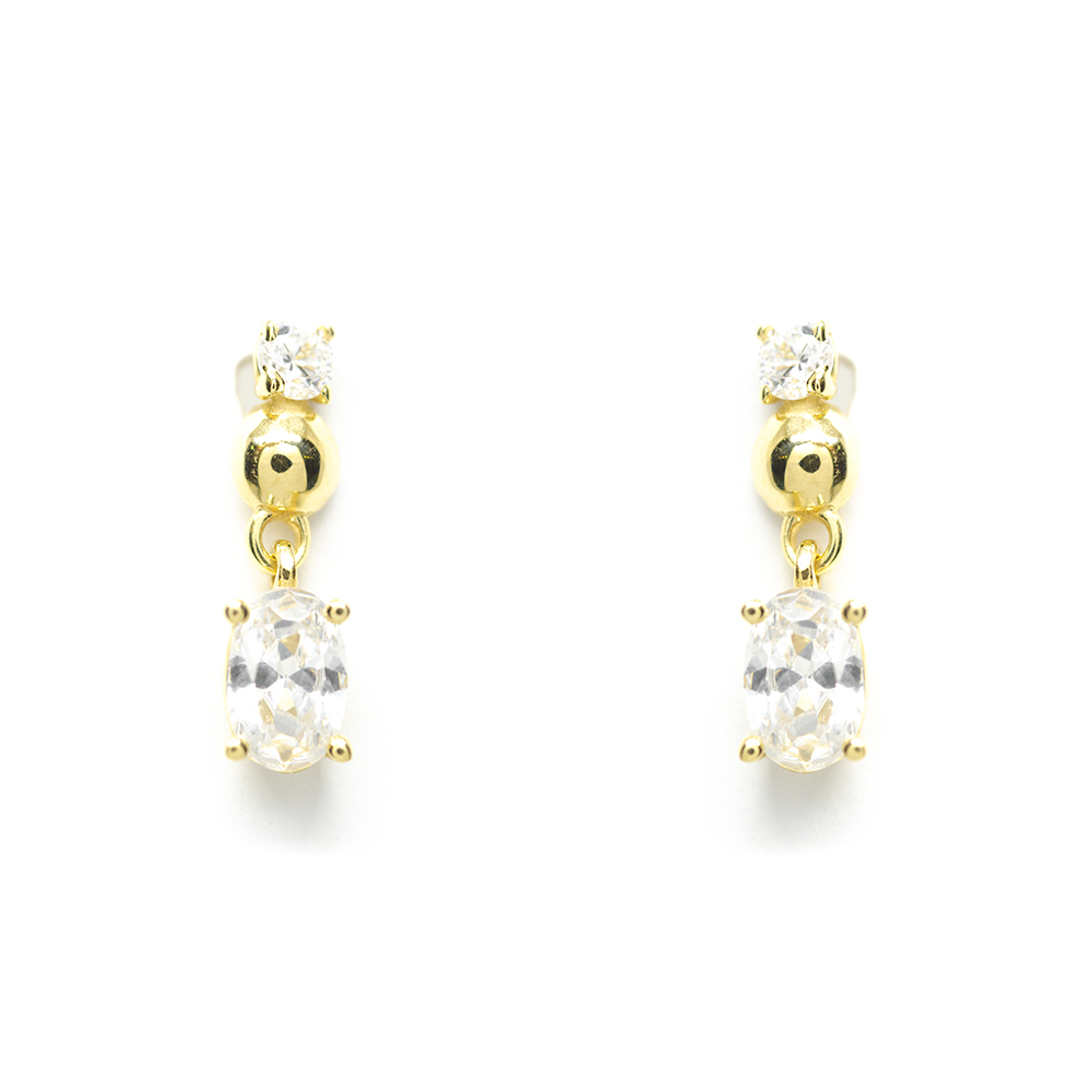 K14 yellow gold dangling earrings with wonderful shiny cubic zirgons and shiny gold in a contemporary style and subtle movement. Ideal for everyday sophisticated looks with an urban chic air.