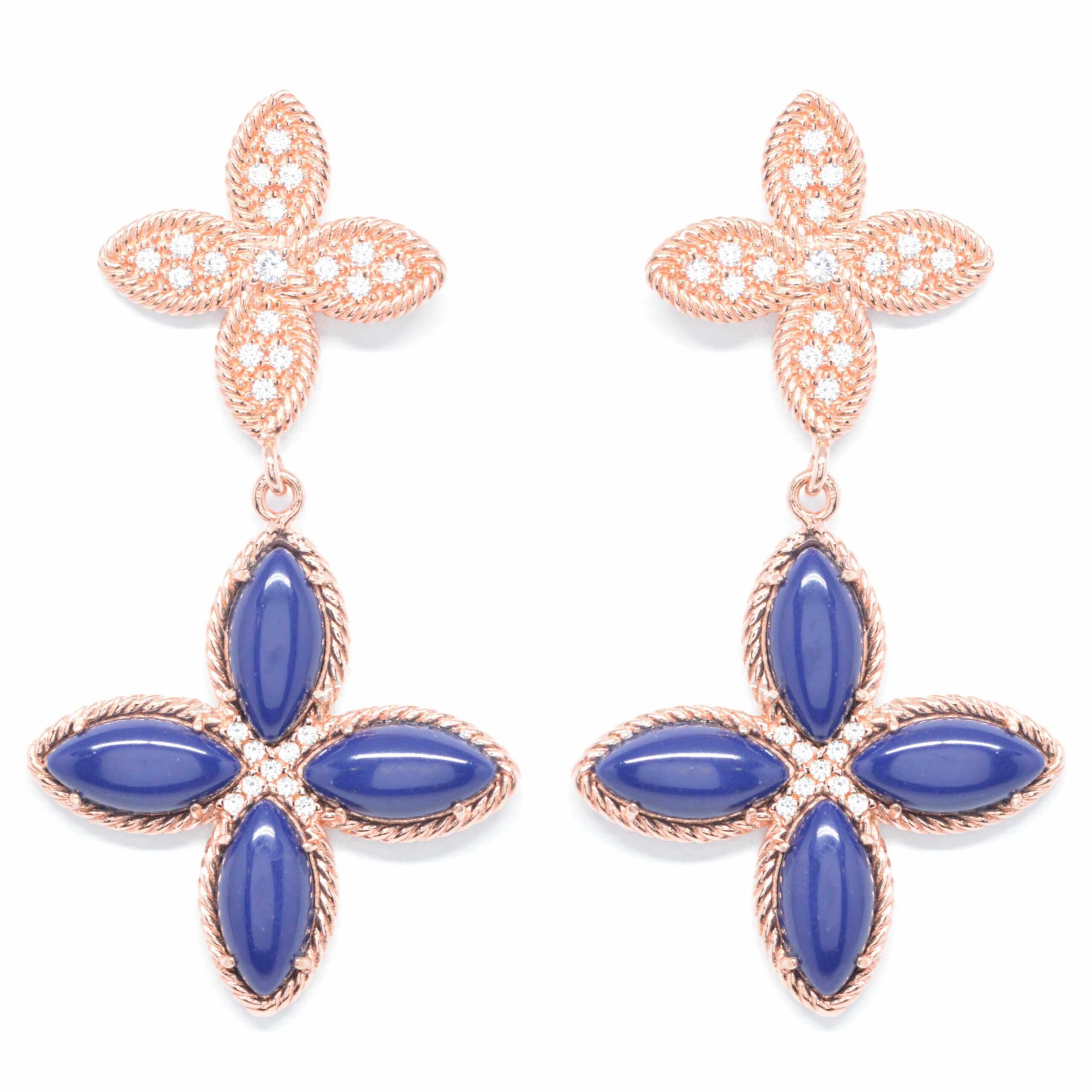 925 silver earrings in K18 rose gold plating with exquisite motifs of blue lapis and cubic zirgons giving shine and a refined style. Ideal for all day chic looks.